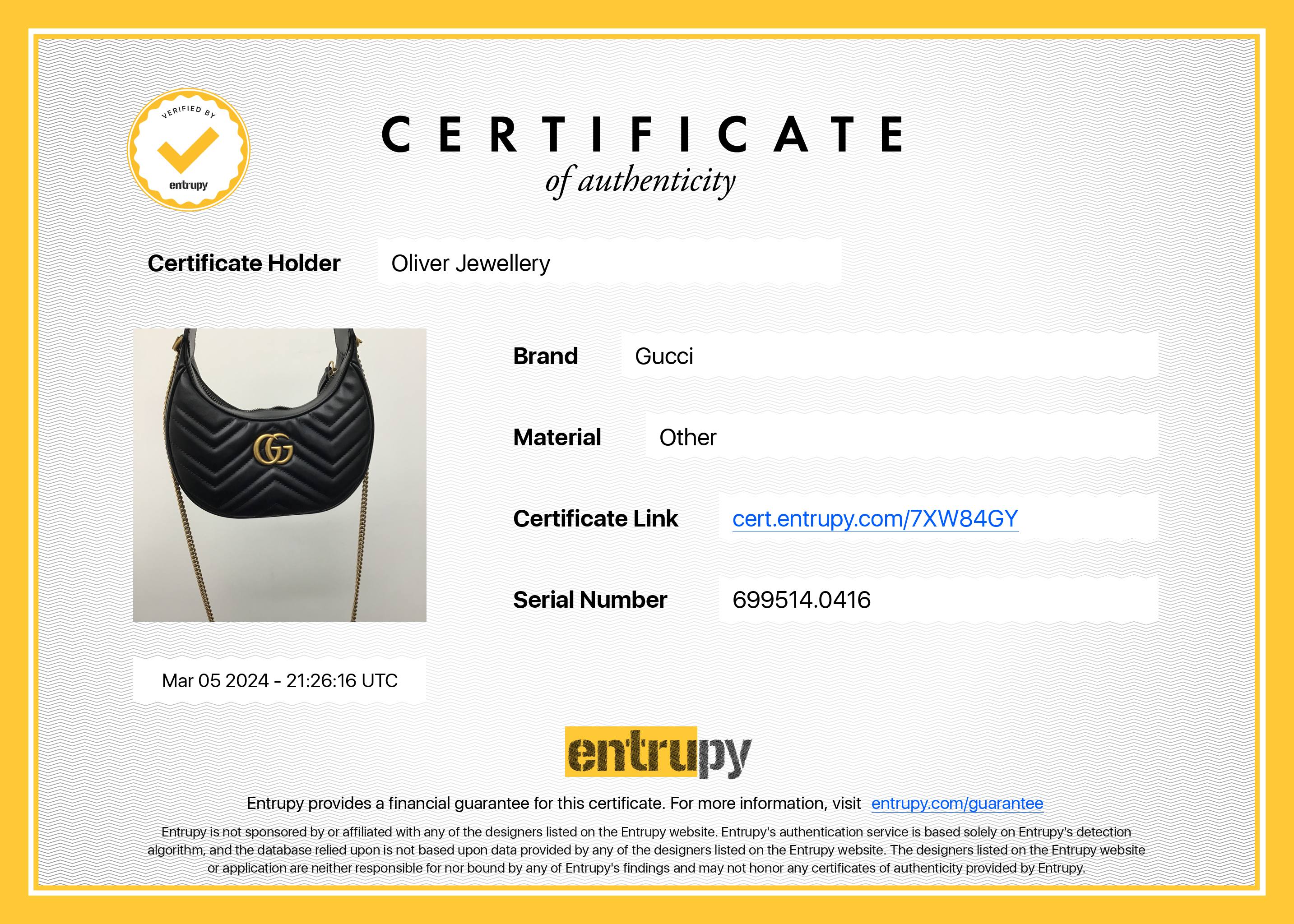 Box, Receipt, Dust Bag, Chain-Link Strap, Key Ring, Entrupy Certificate of Authenticity