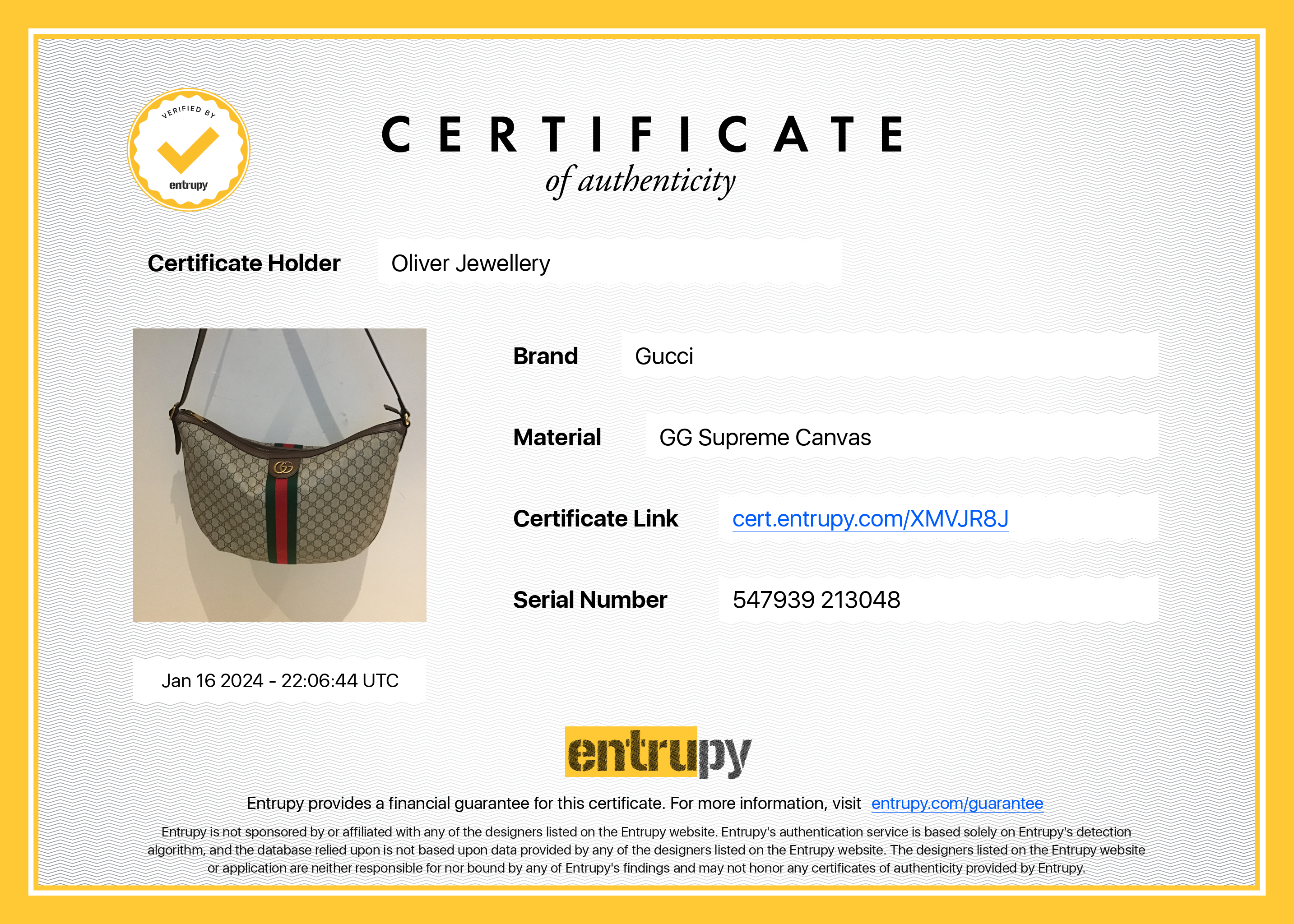 Dust Bag, Entrupy Certificate of Authenticity