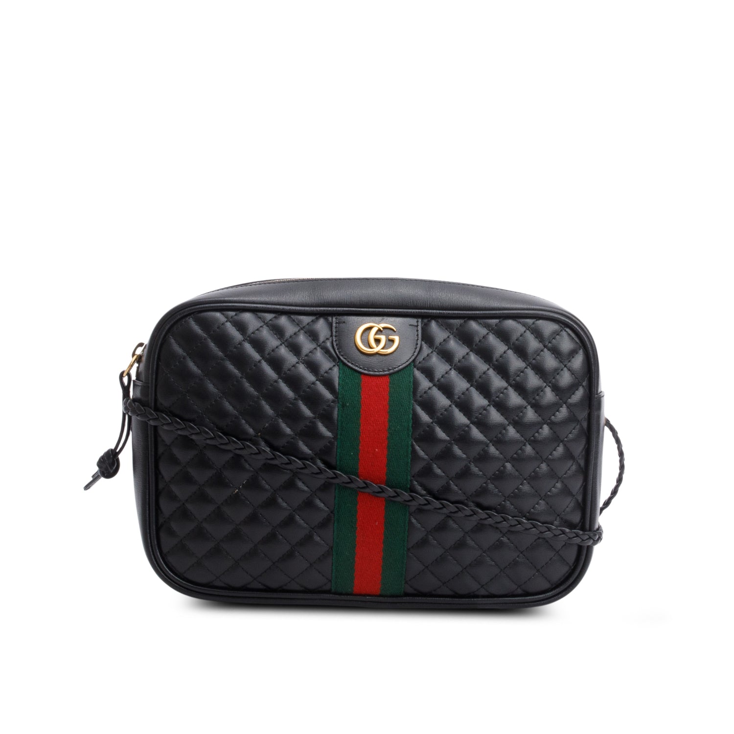 Black Calfskin Web Trapuntata Small GG Shoulder Bag