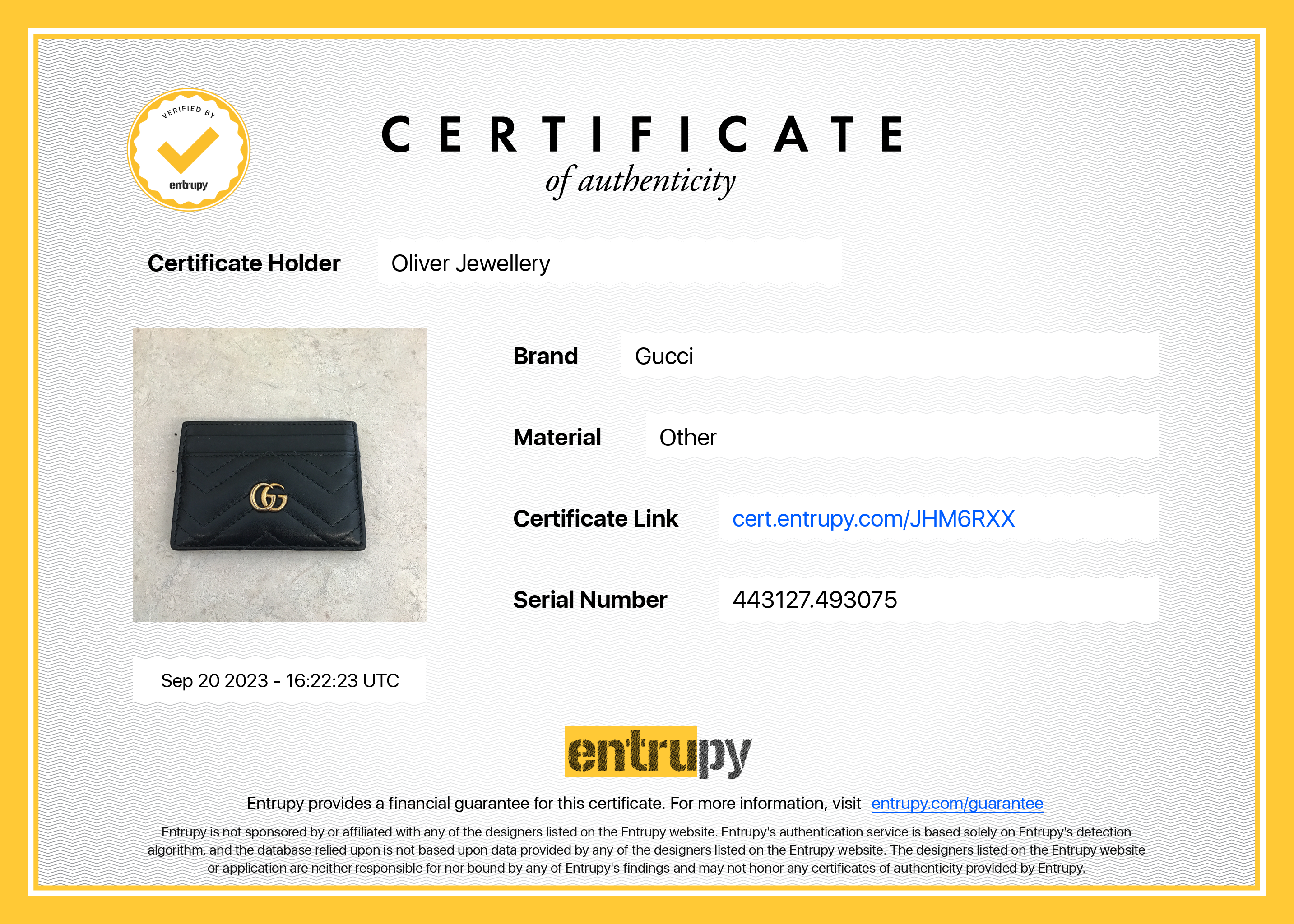 Box, Dust Bag, Entrupy Certificate of Authenticity