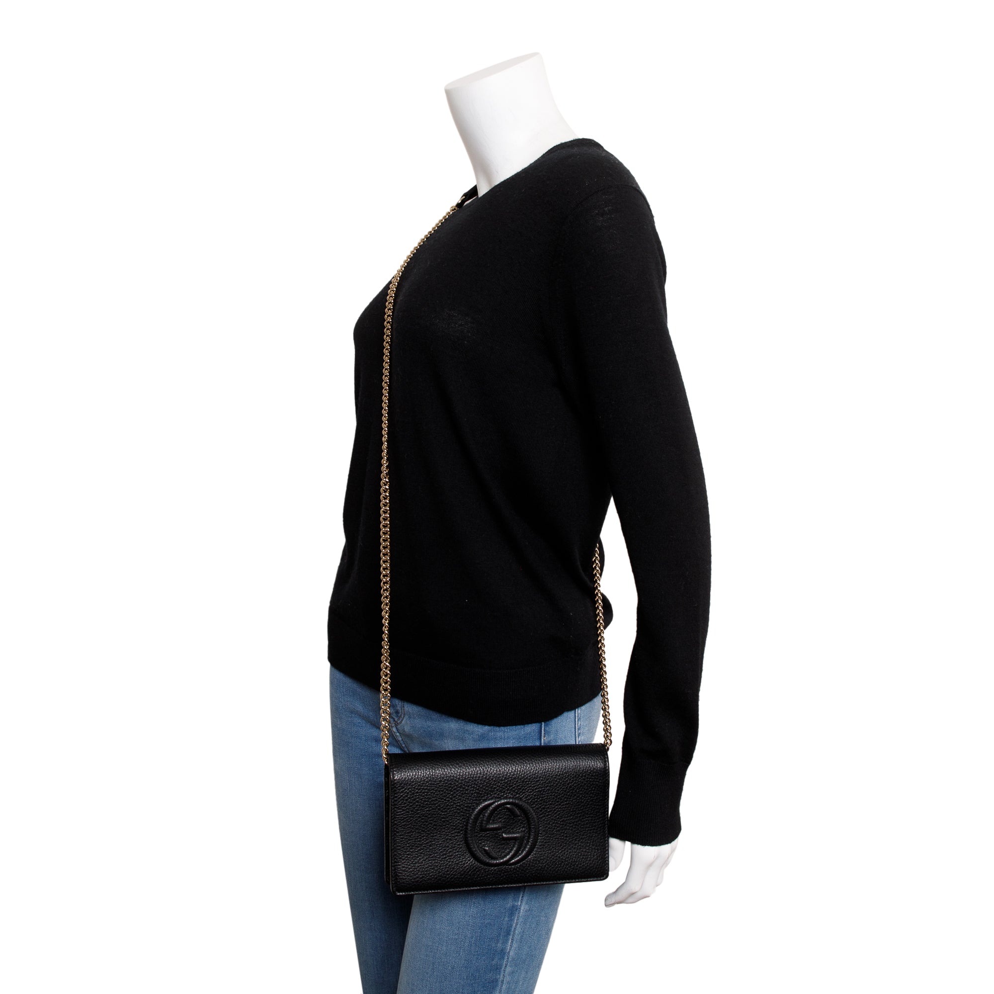 Black Pebbled Calfskin Soho Wallet On Chain w/ Box