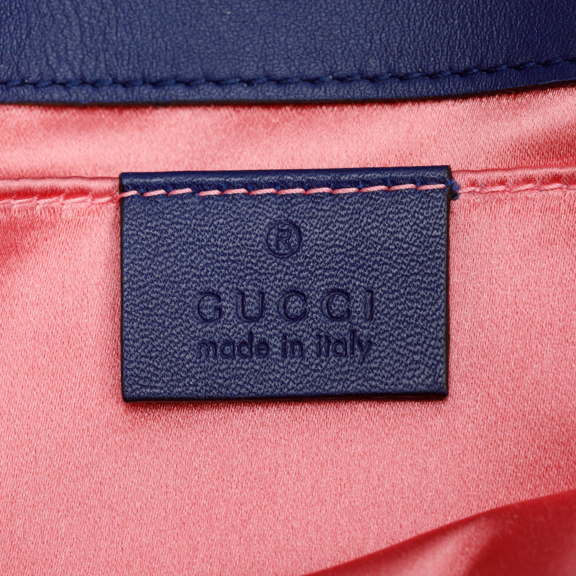 Blue Velvet Matelasse GG Marmont Mini Shoulder Bag