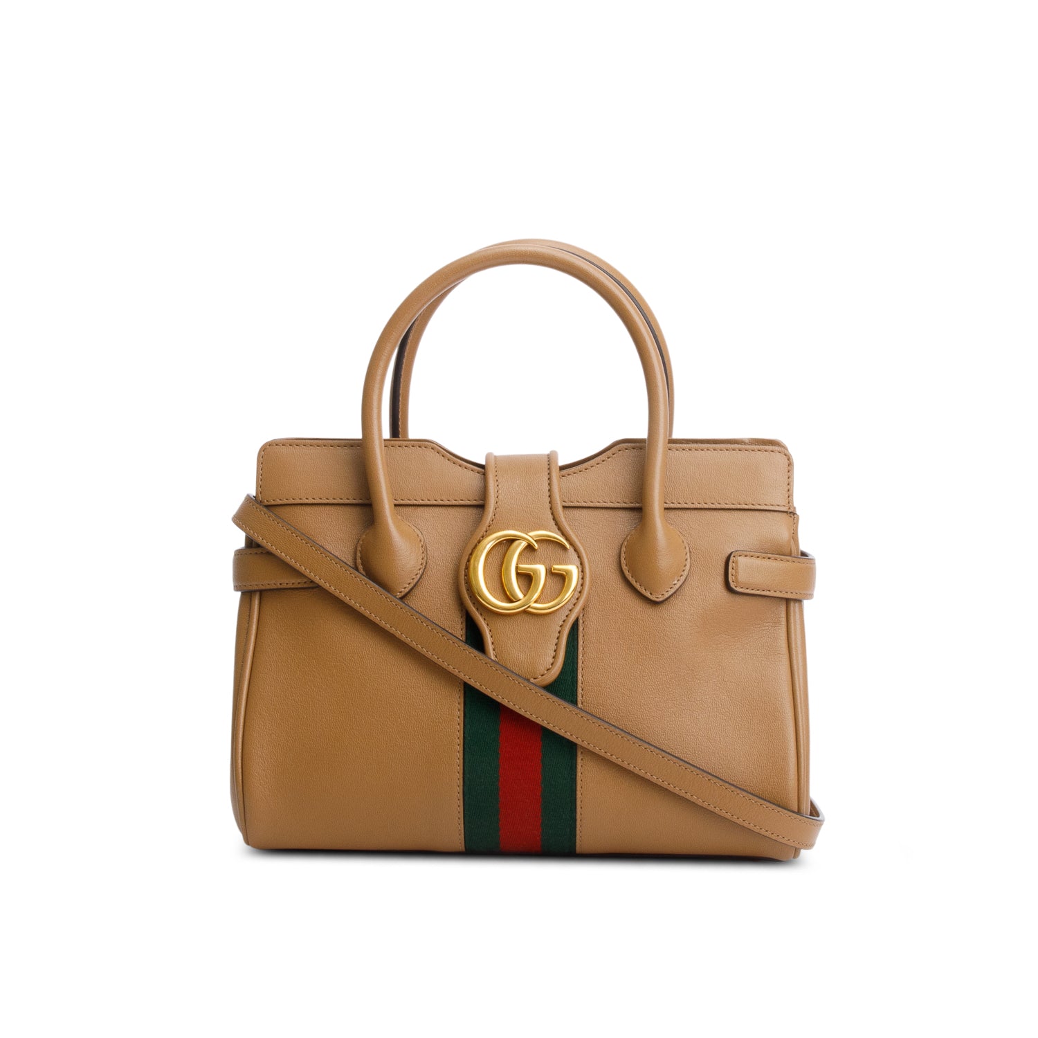 Brown Calfksin Leather Small Dahlia Handle Bag w/ Strap & Box