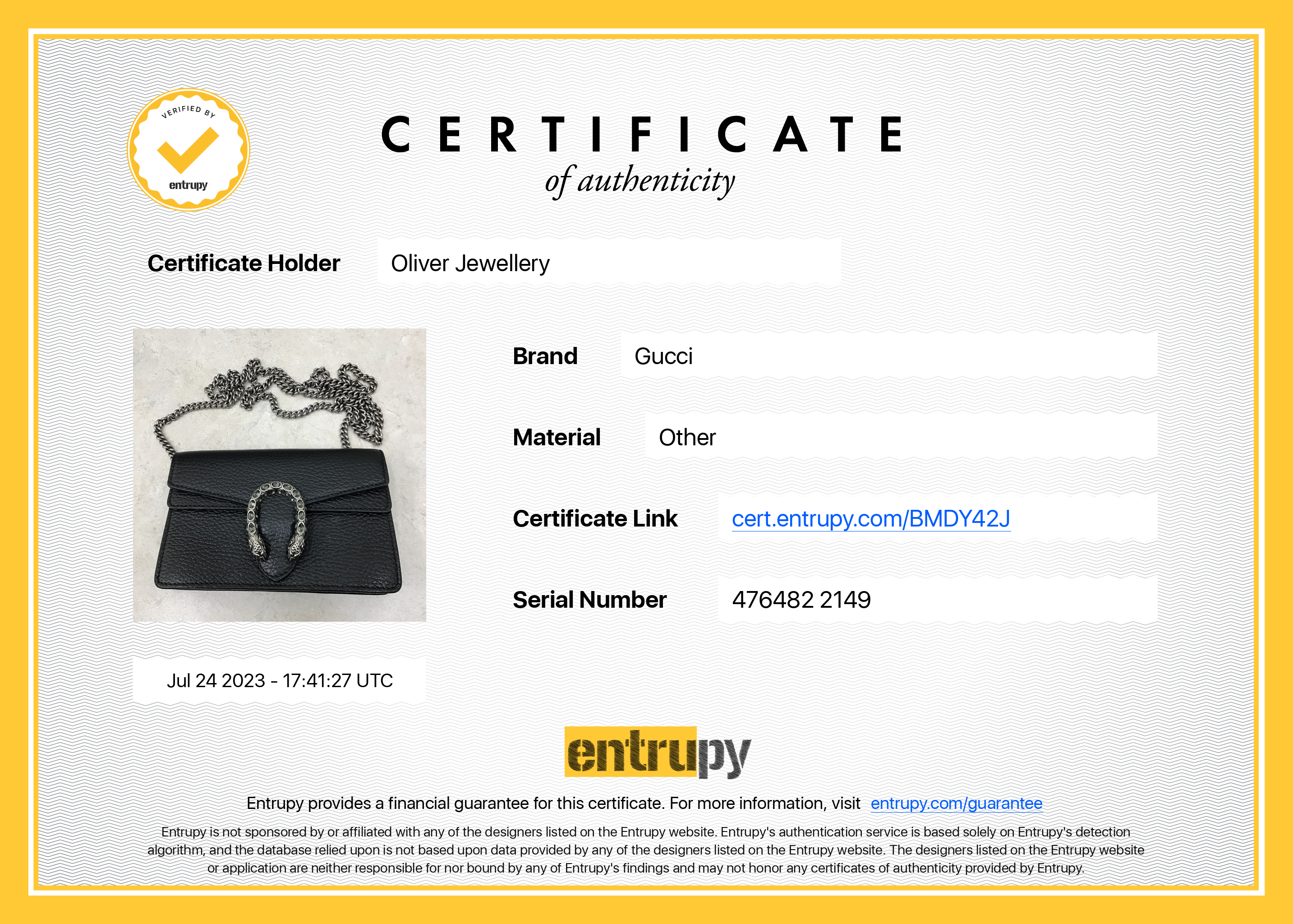 Included Items: Original Gucci Box, Dust Bag, Booklet & Entrupy Certificate of Authenticity # BMDY42J