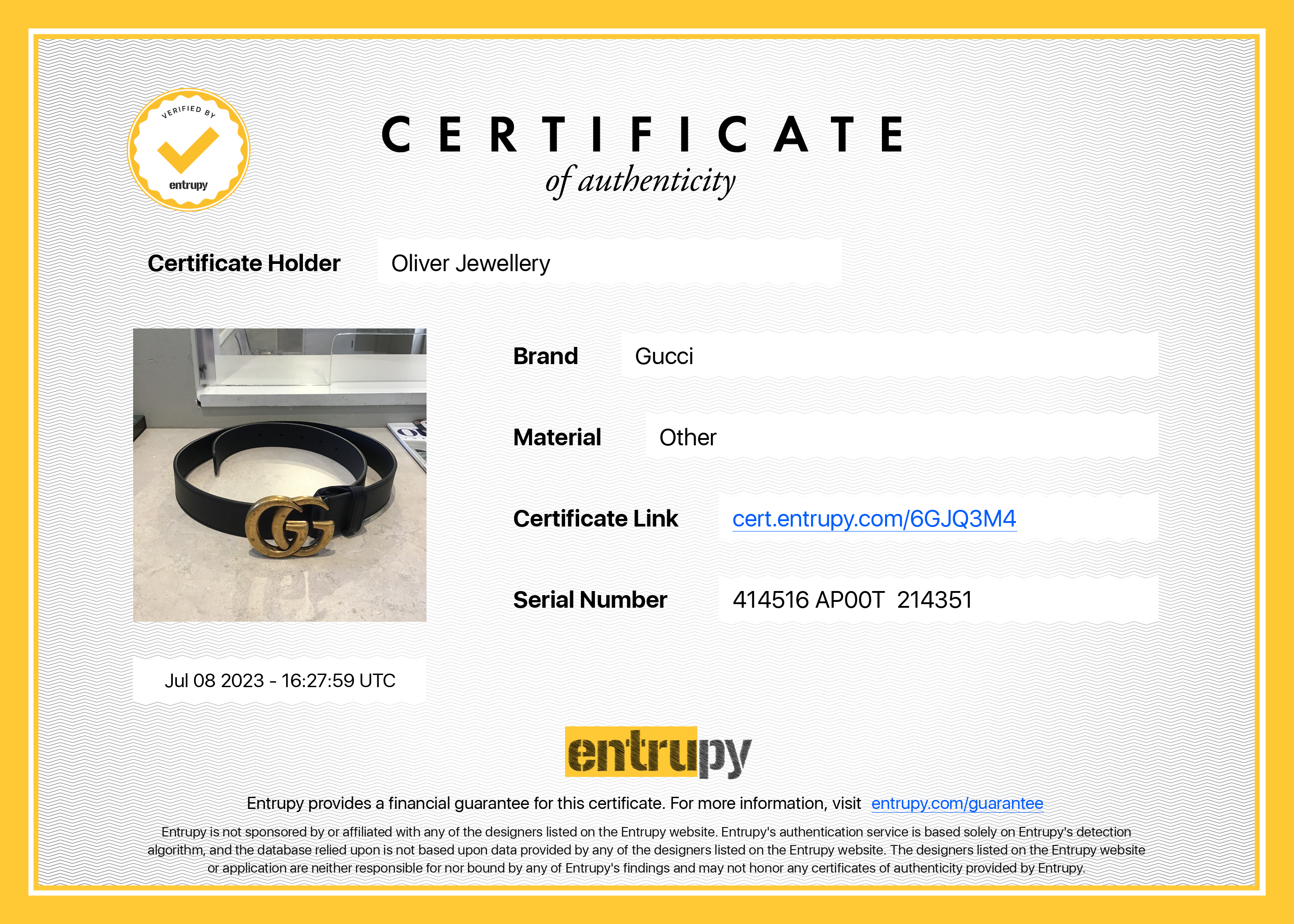 Included Items: Original Gucci Box, Dust Bag and Entrupy Certificate of Authenticity #: 6GJQ3M4