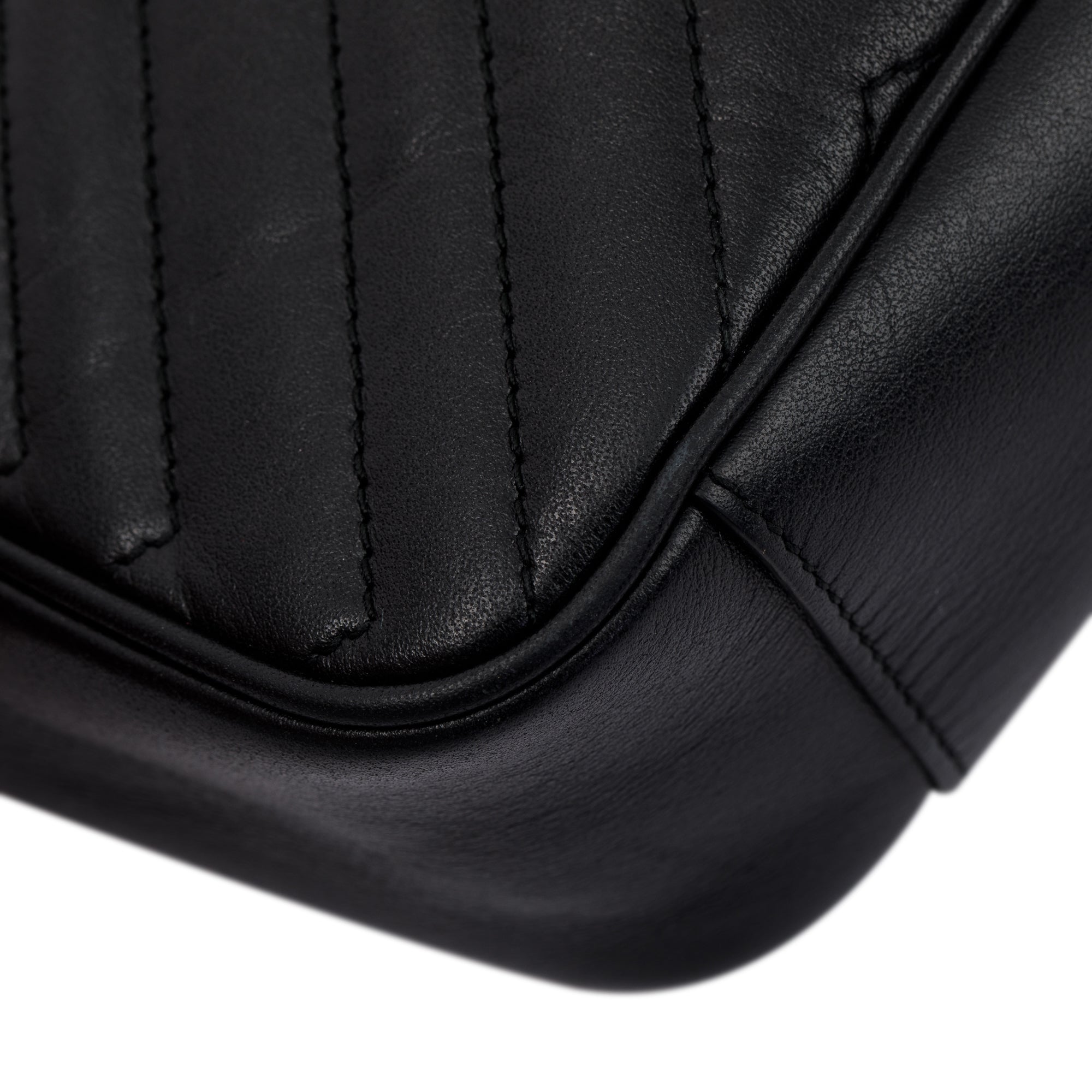 Condition: Very Good; slight scratches at hardware; slight creasing at exterior leather; faint scratches at flap underside; light wear at interior