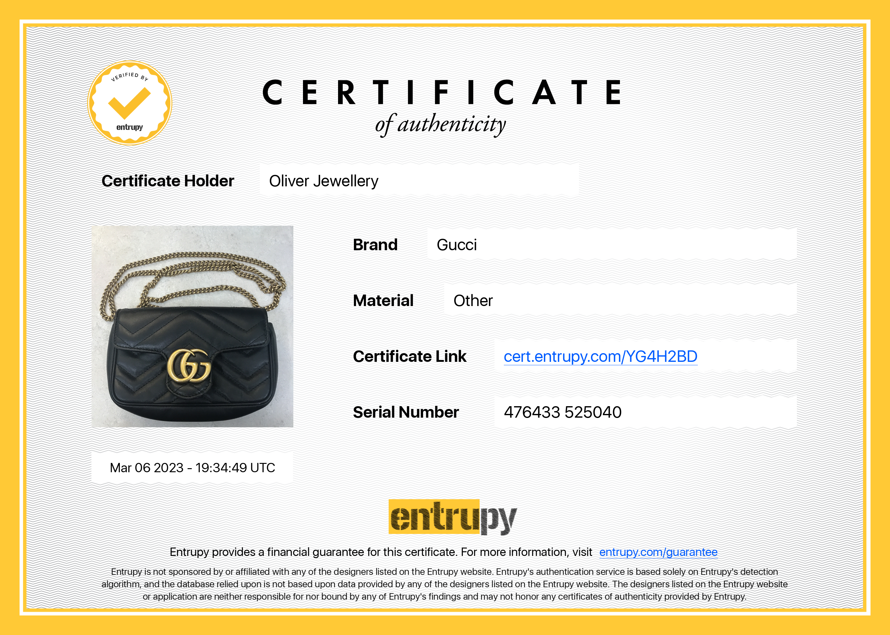 Included Items: Original Gucci Dust Bag and Entrupy Certificate of Authenticity #: YG4H2BD