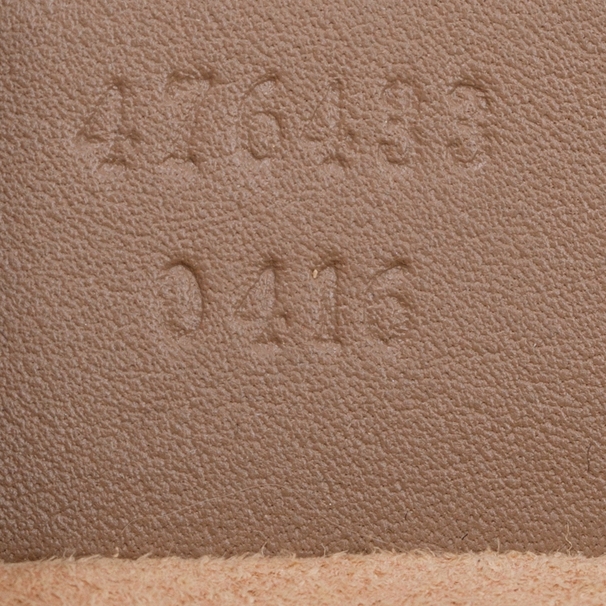Condition: Very Good; slight tarnishing at hardware; light scratches at flap under side; minor marks at interior