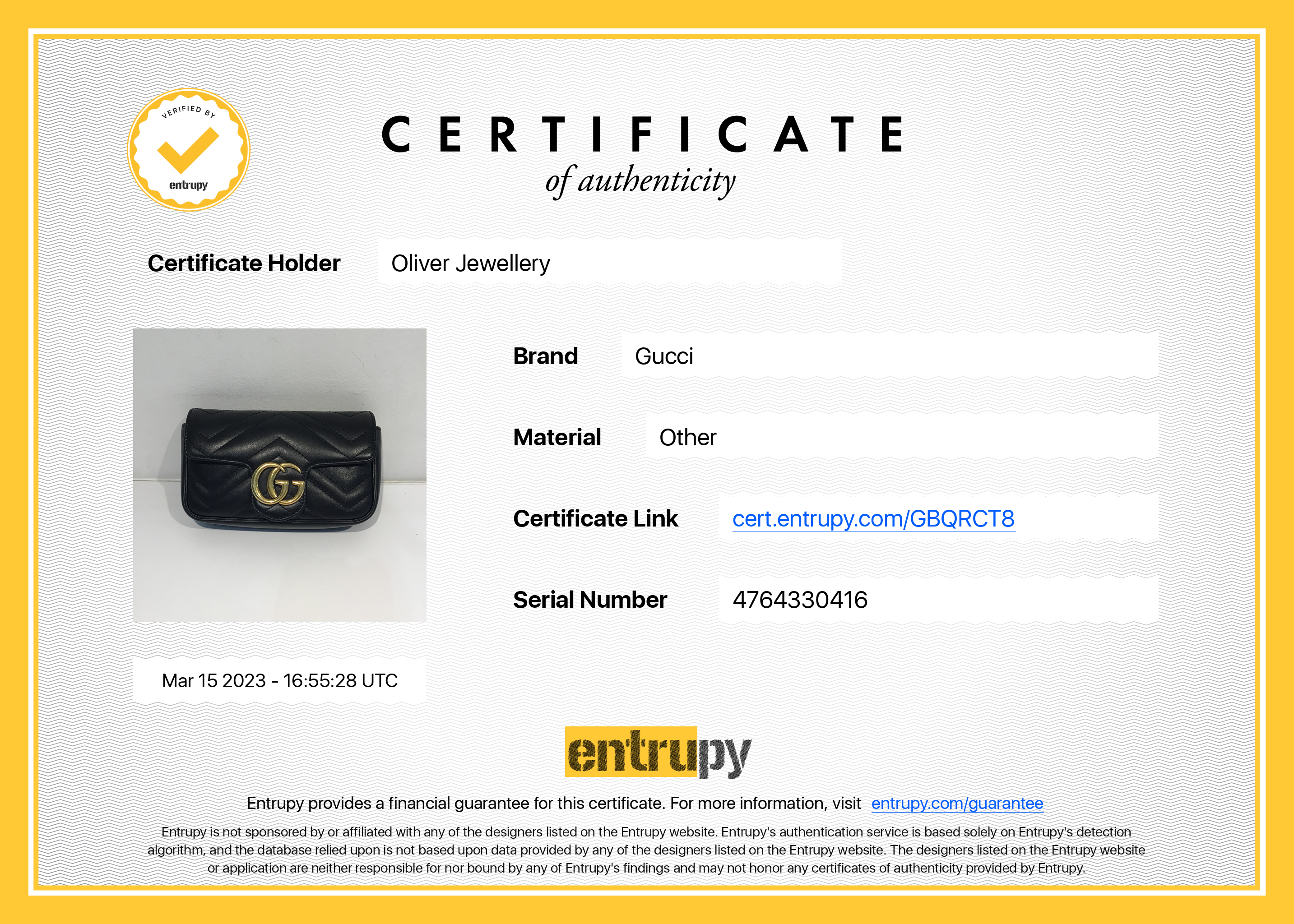 Included Items: Original Gucci Box, Booklet, Dust Bag and Entrupy Certificate of Authenticity #: GBQRCT8