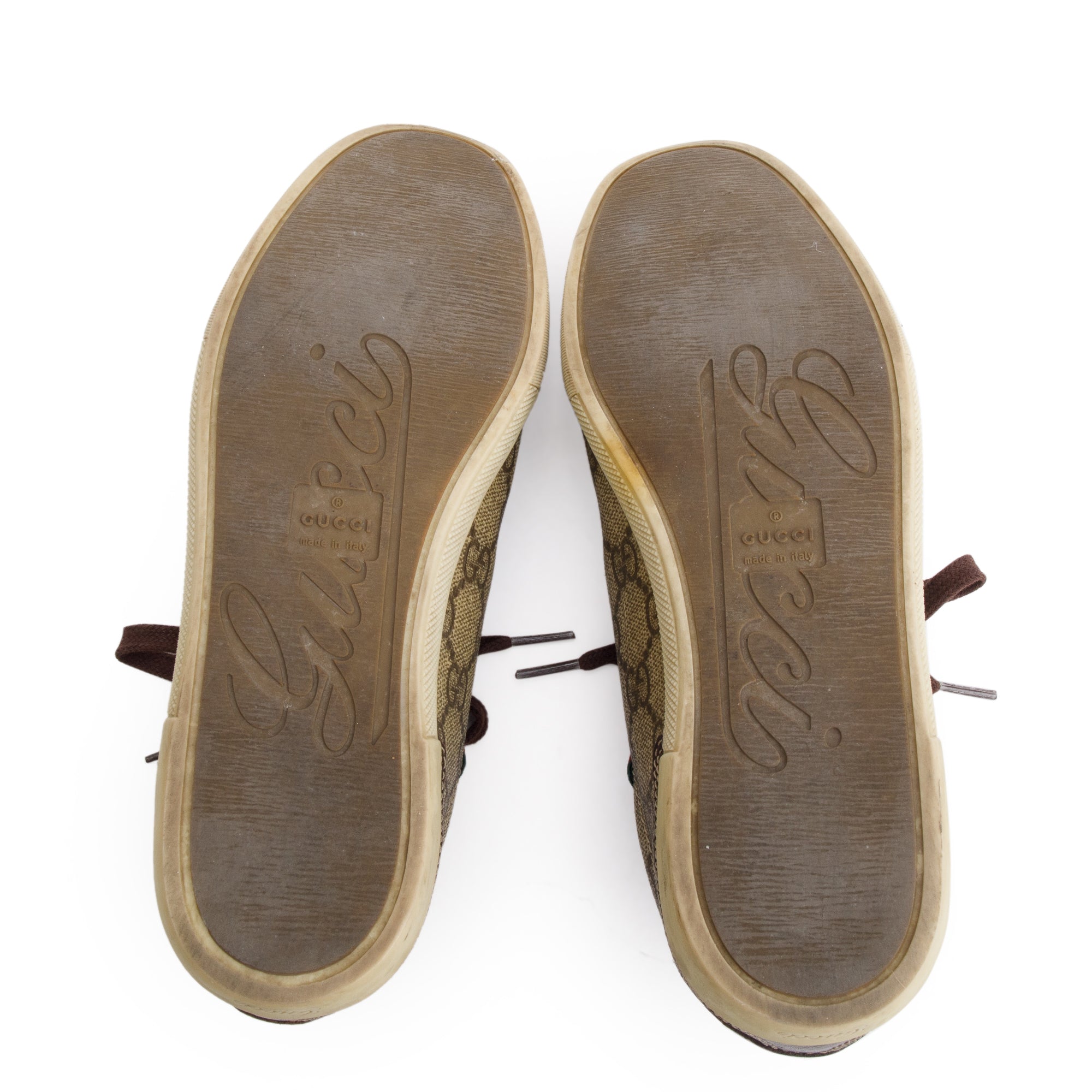 GG Supreme Brown Leather Trim Web Low Top Sneakers, Size 36