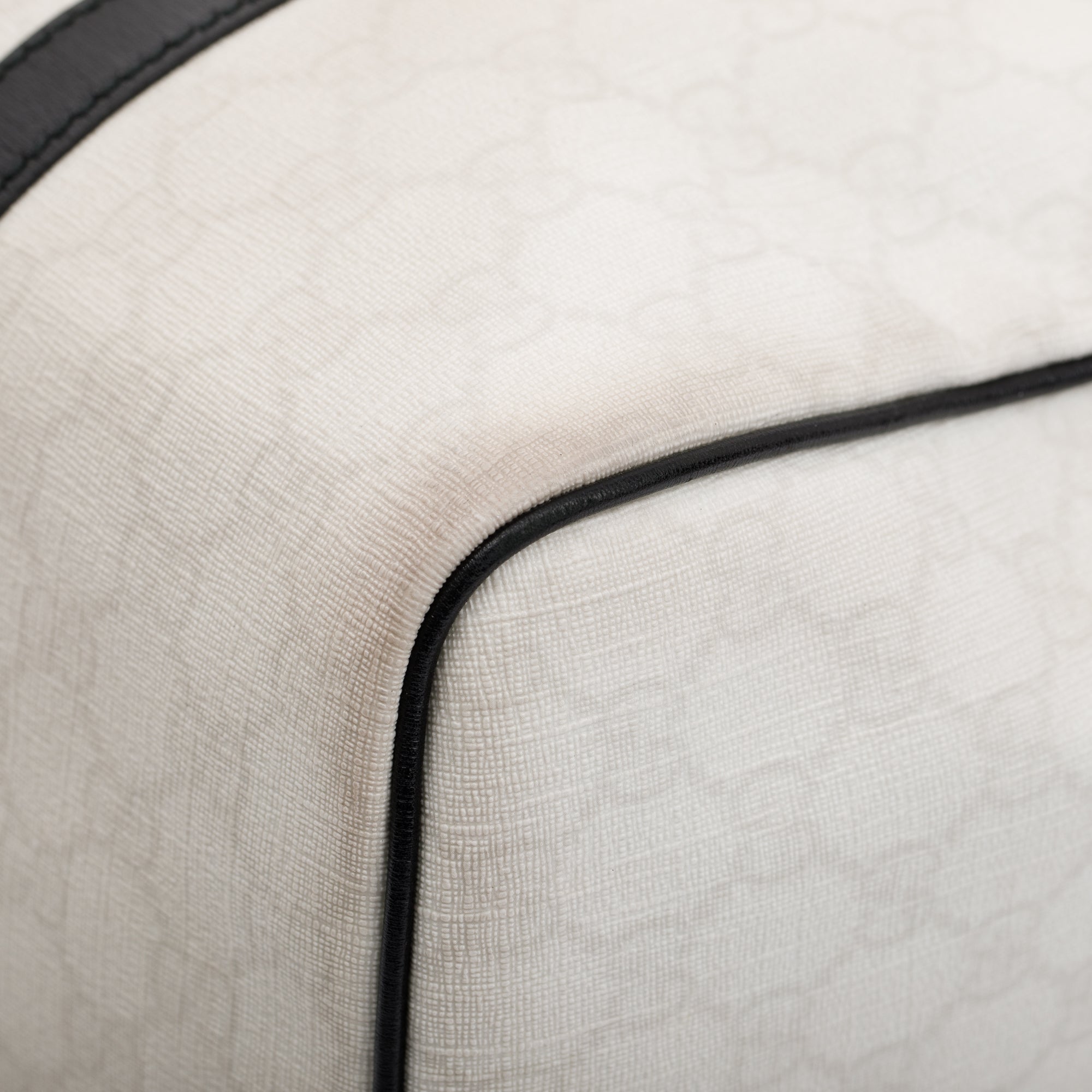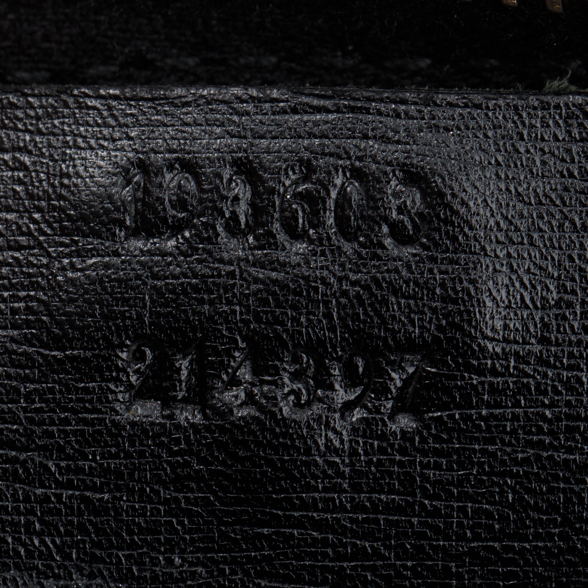 Condition: Good; slight scratches at exterior leather trim, some discoloration at exterior canvas; light mark at interior