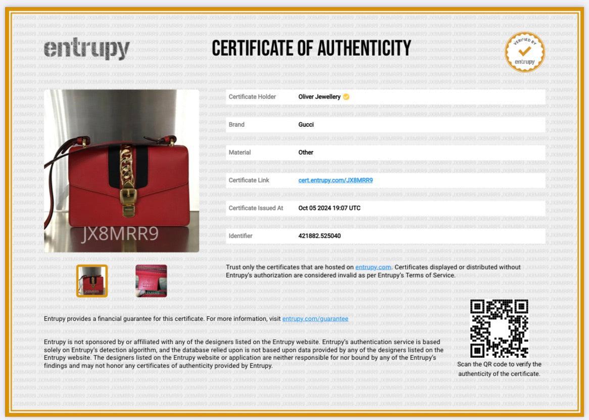 Dust Bag, Strap, Booklet, Entrupy Certificate of Authenticity