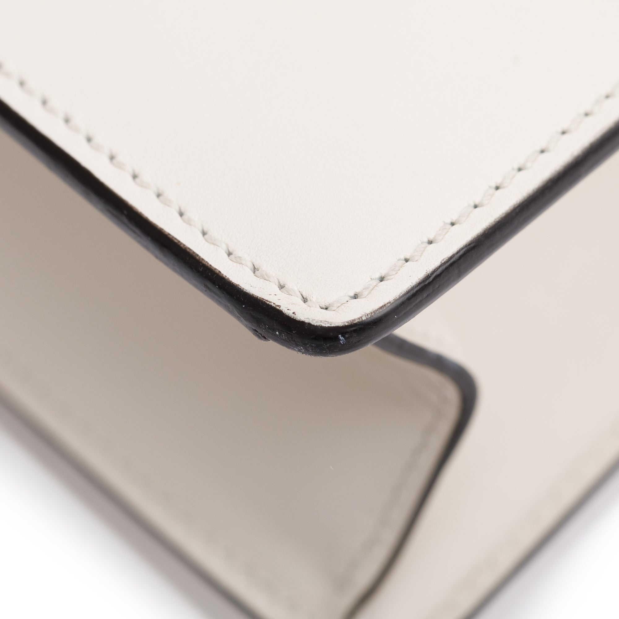 Condition: Very Good; slight scratches at hardware; light scratches at exterior leather; slight scratches at flap underside; clean interior