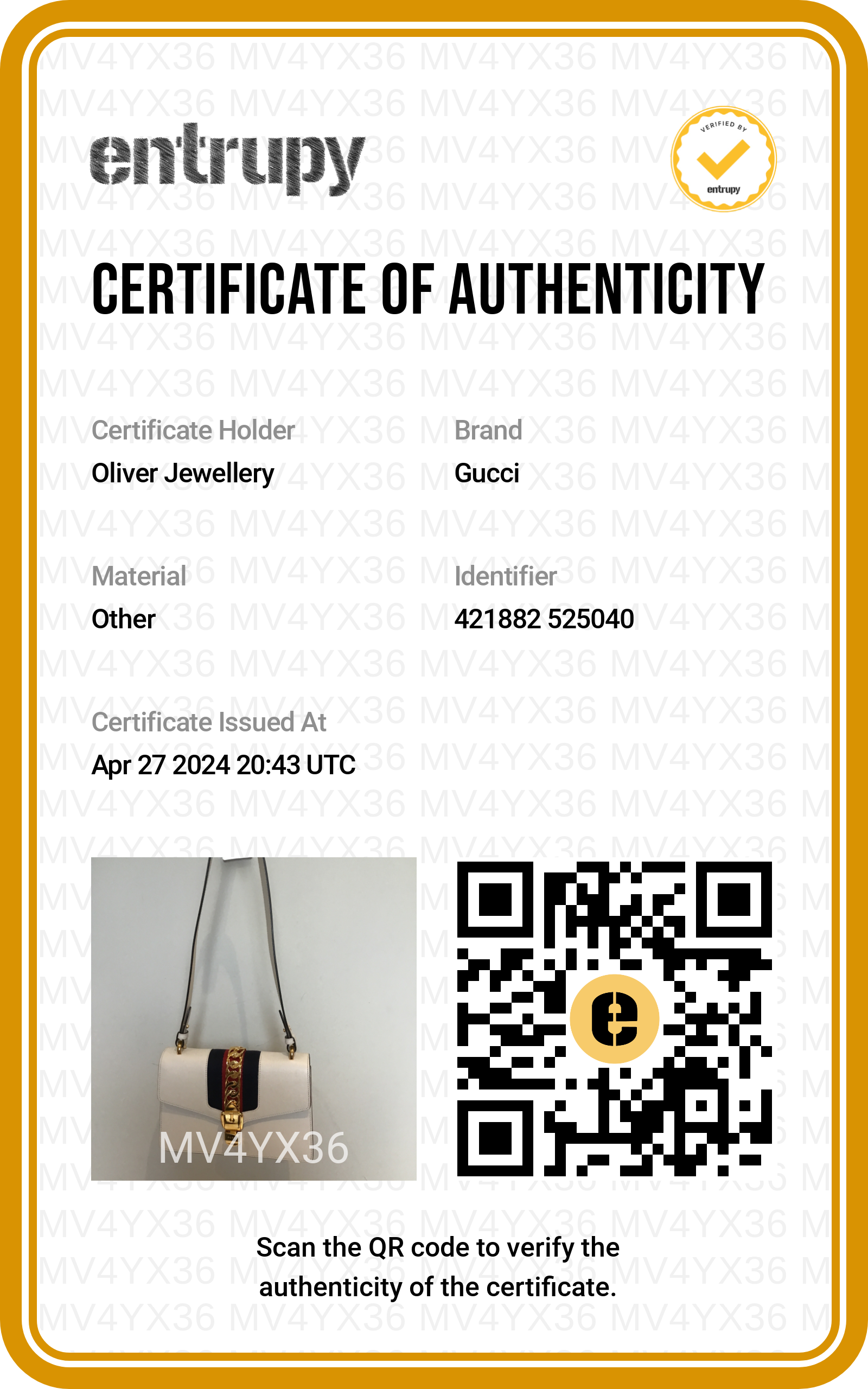 Strap, Entrupy Certificate of Authenticity