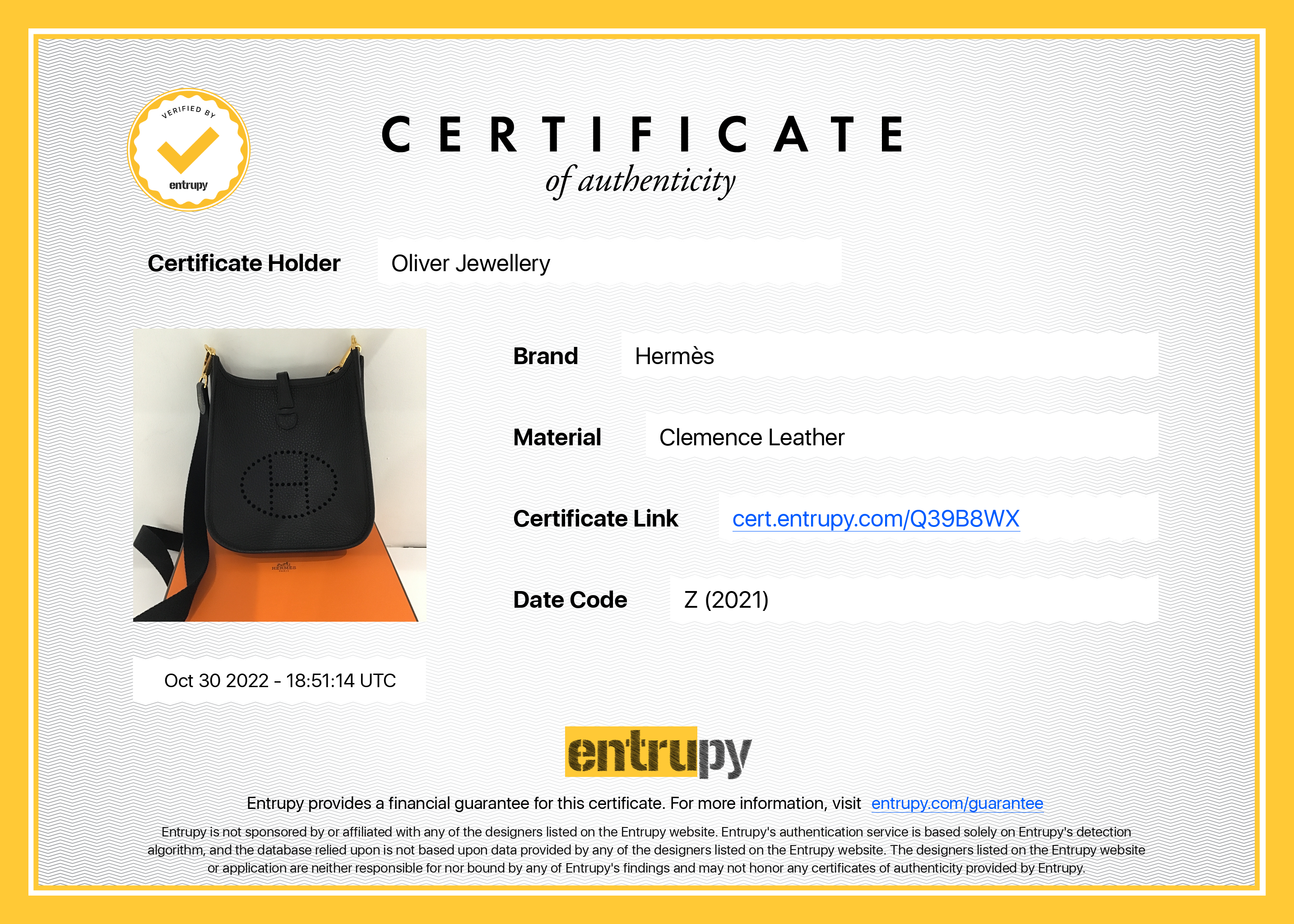 Included Items: Original Hermes Box & Entrupy Certificate of Authenticity #: Q39B8WX