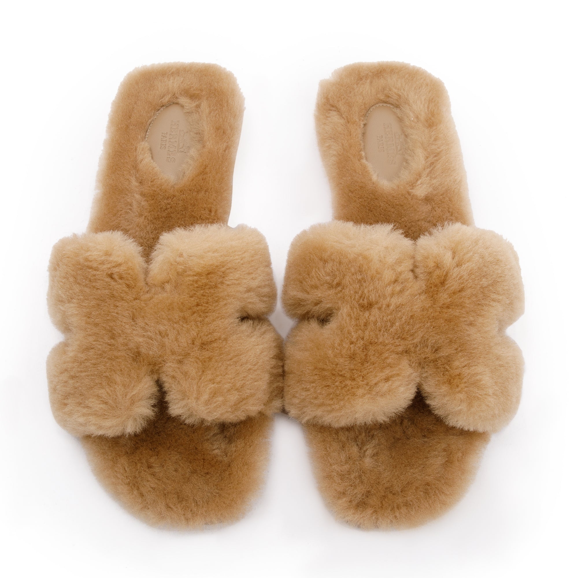 Beige Argile Peau Lainee Mer Oran Sandals, Size 40 w/ Box