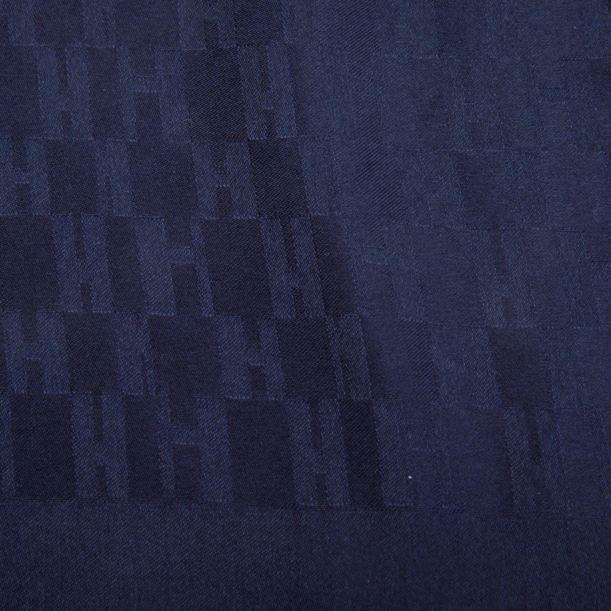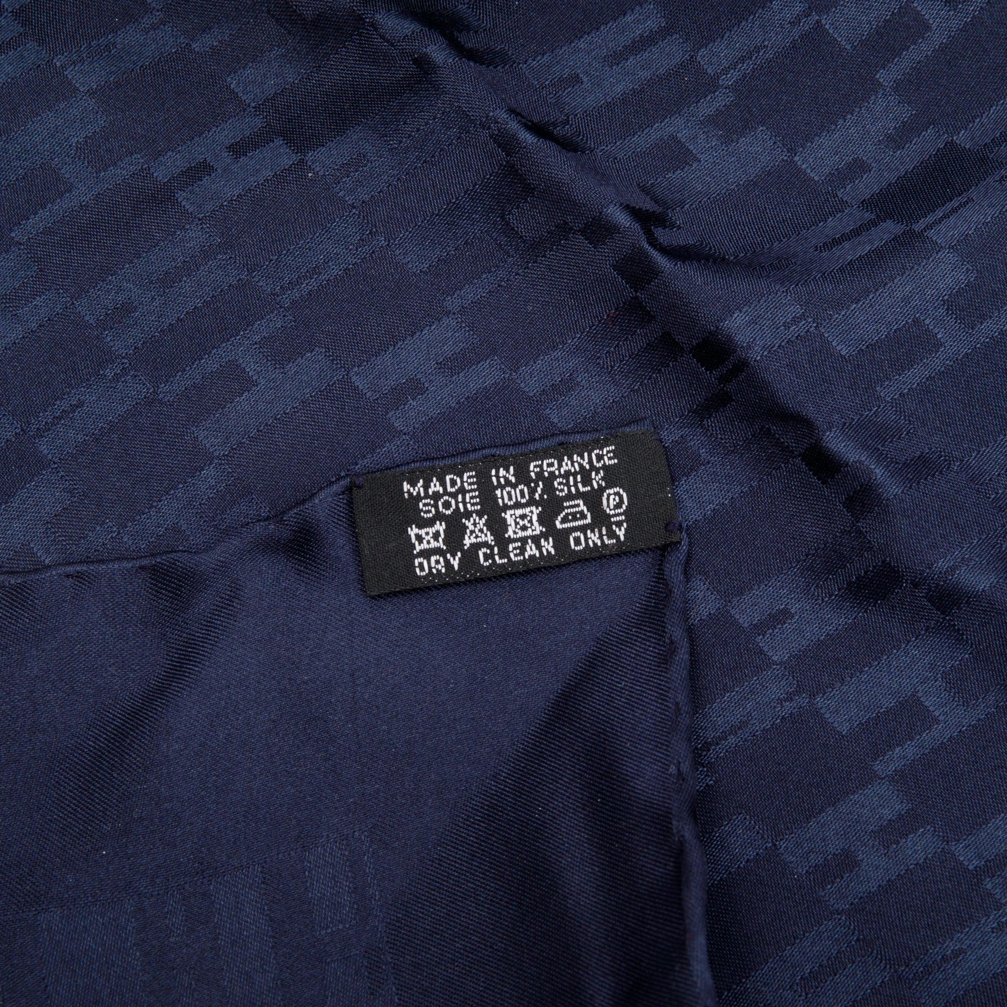 Navy 'Faconnee Grand H' Pocket Square Silk Scarf 45 w/ Box