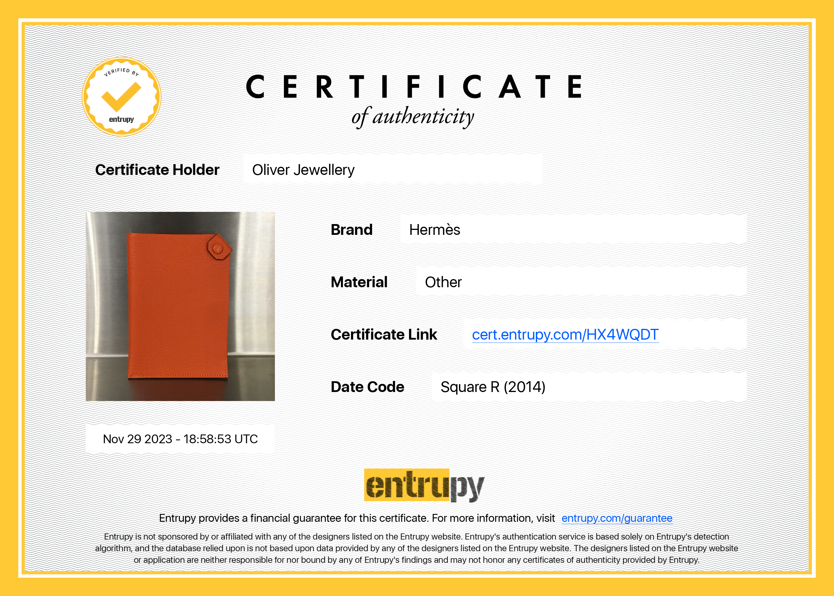 Box, Entrupy Certificate of Authenticity