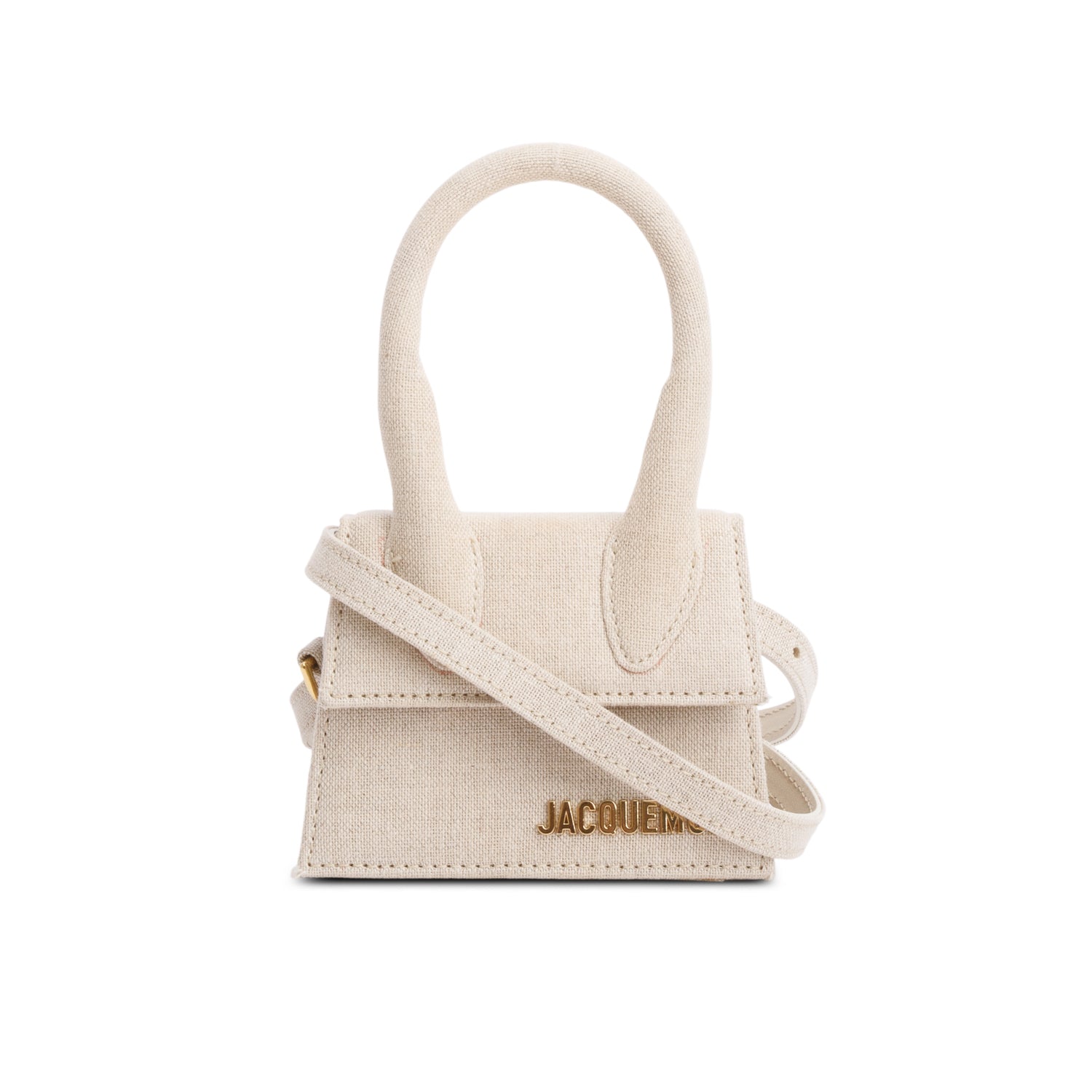 White Canvas Mini Signature Le Chiquito Handle Bag w/ Strap