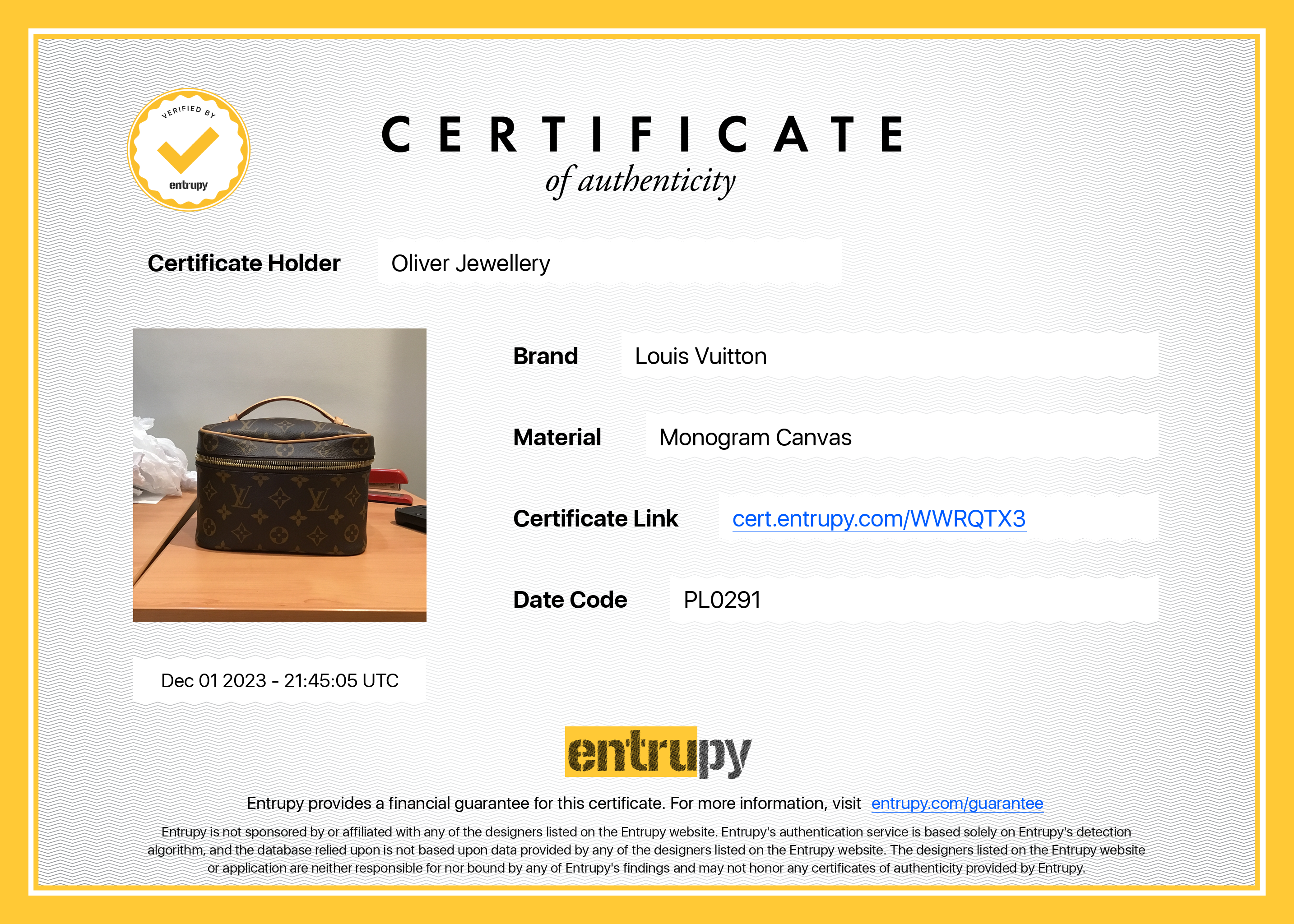 Dust Bag, Tag, Entrupy Certificate of Authenticity