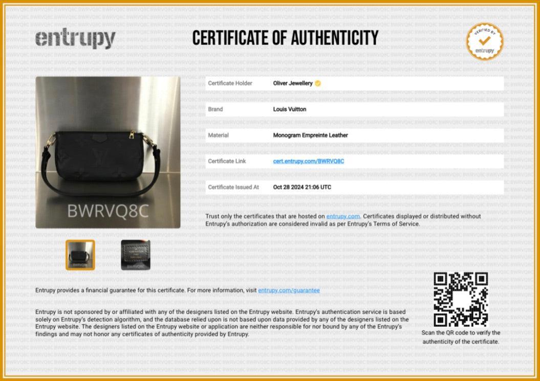 Box, Leather Strap, Entrupy Certificate of Authenticity