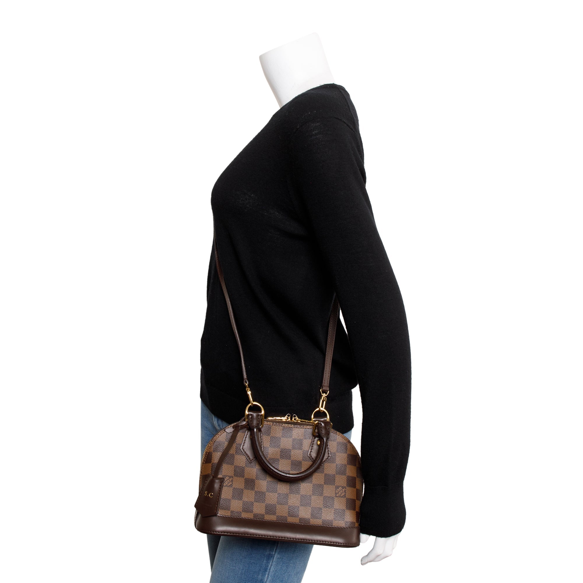 Condition: Very Good; light tarnishing at hardware; slight scratches and scuffing at exterior bottom corners and top handle; initials 'S.C" hot stamped at clochette; clean interior