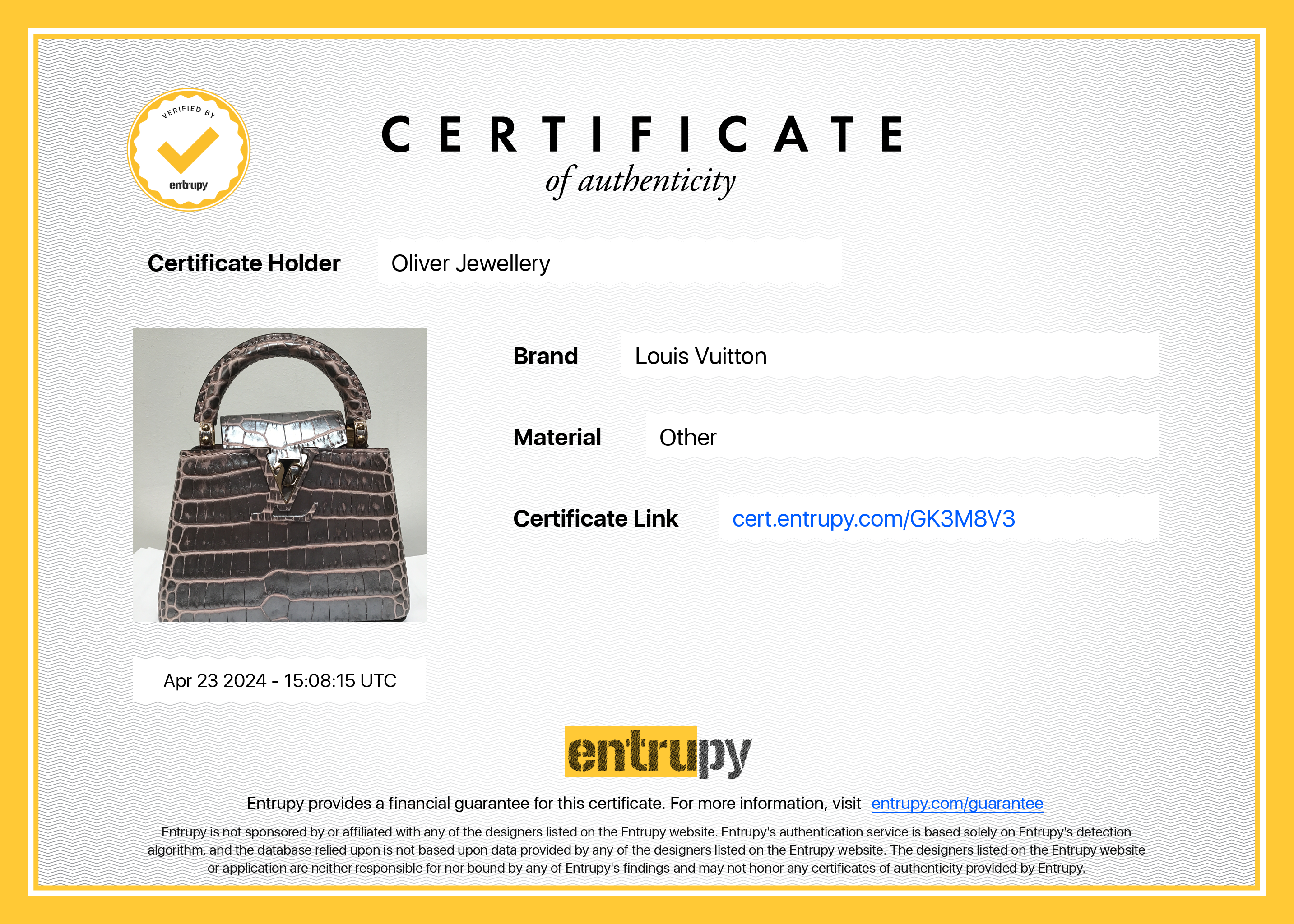 Box, Dust Bag, Strap, Entrupy Certificate of Authenticity