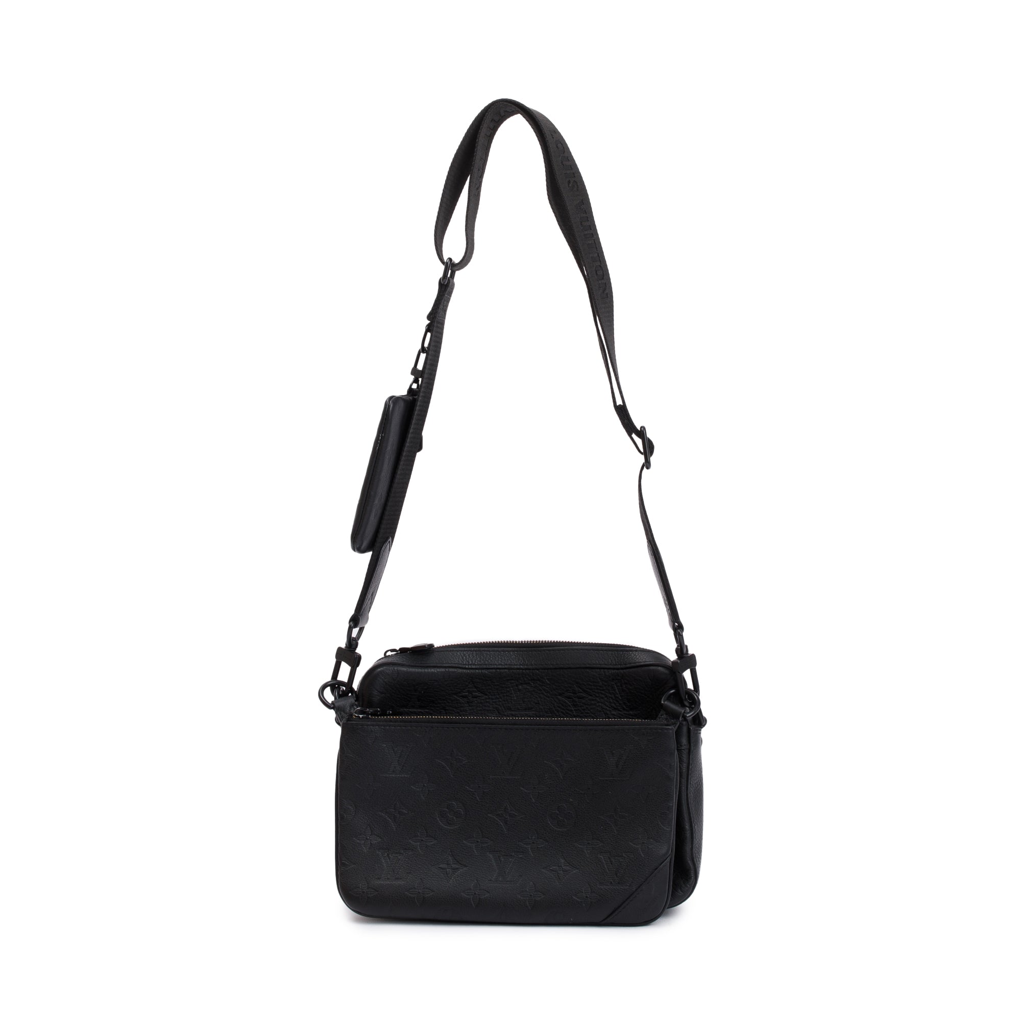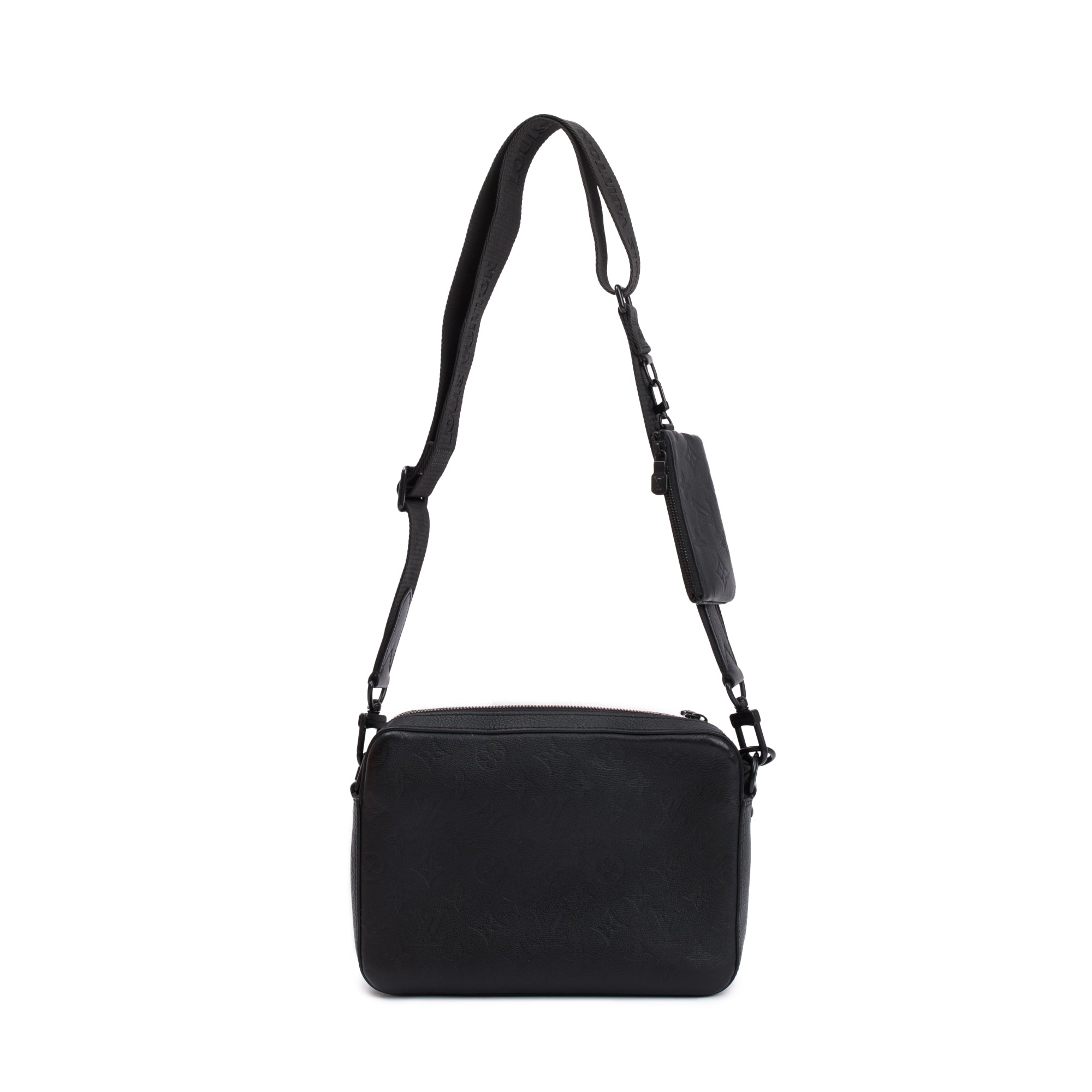 2023 Black Monogram Shadow Embossed Calfskin Leather Trio Messenger Bag w/ Box