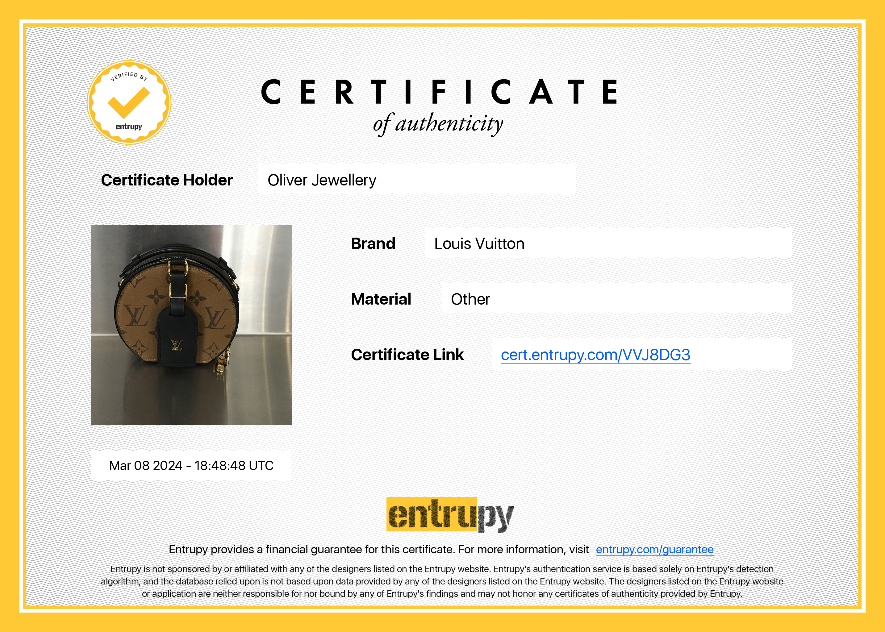 Dust Bag, Detachable Strap, ID Tag, Entrupy Certificate of Authenticity