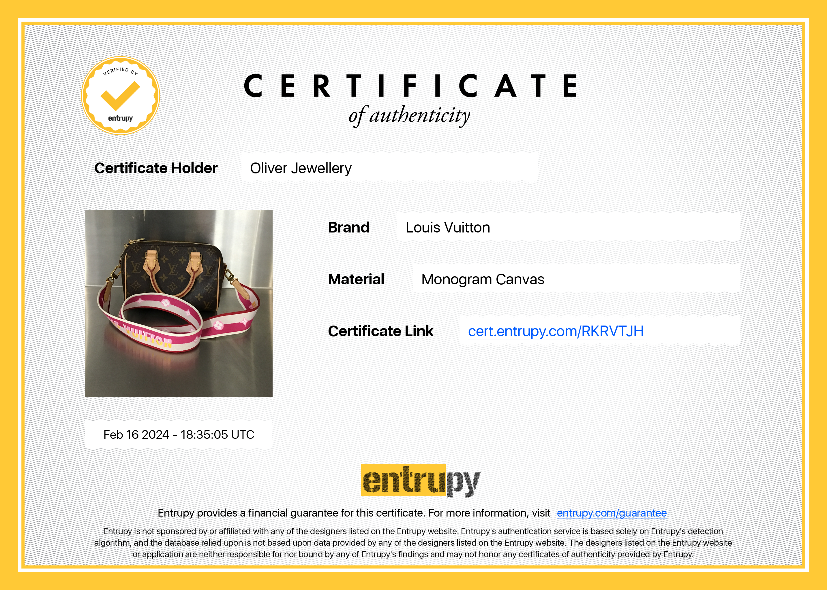 Box, Detachable Strap, Entrupy Certificate of Authenticity