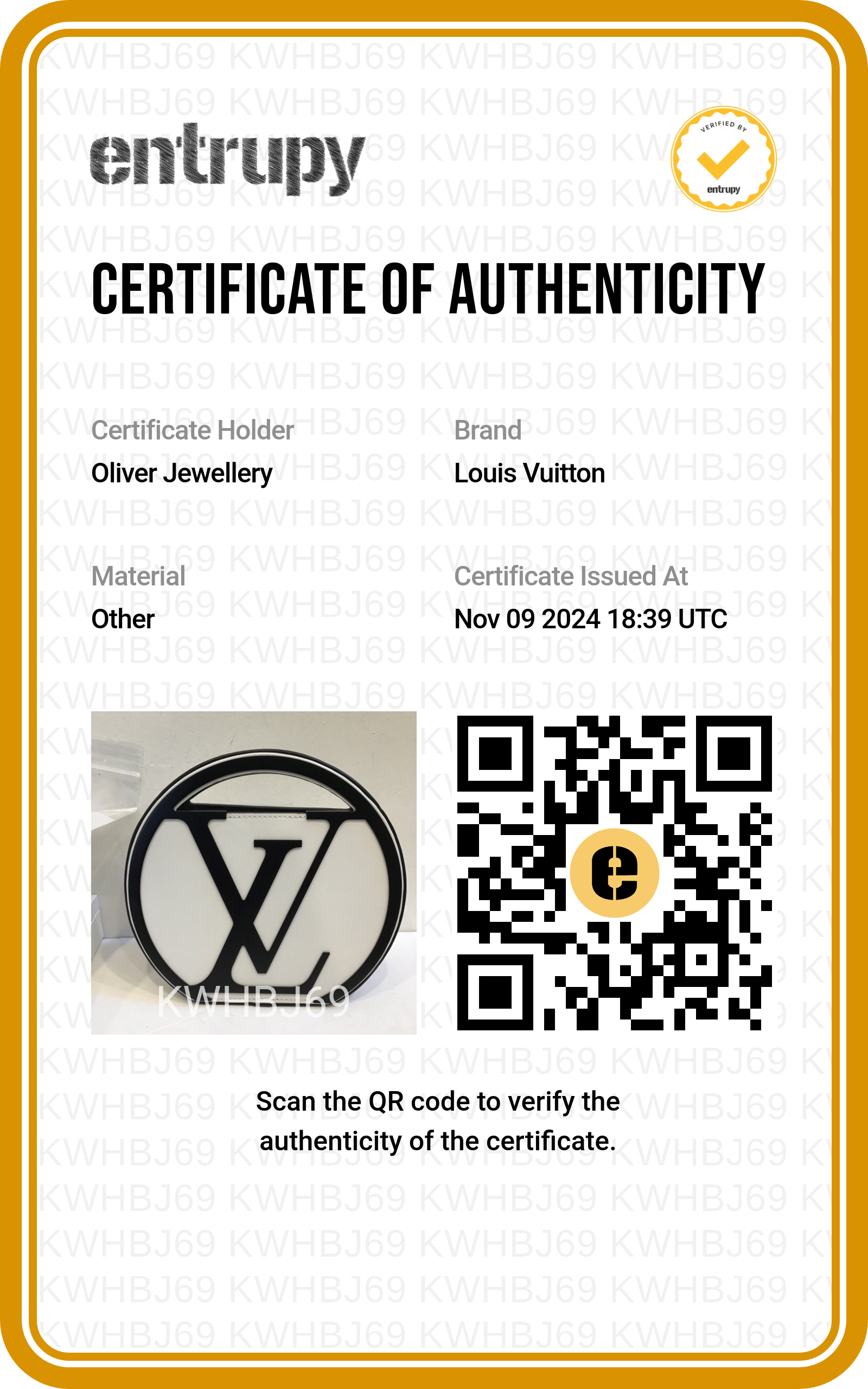 Box, Dust Bag, Strap, Entrupy Certificate of Authenticity
