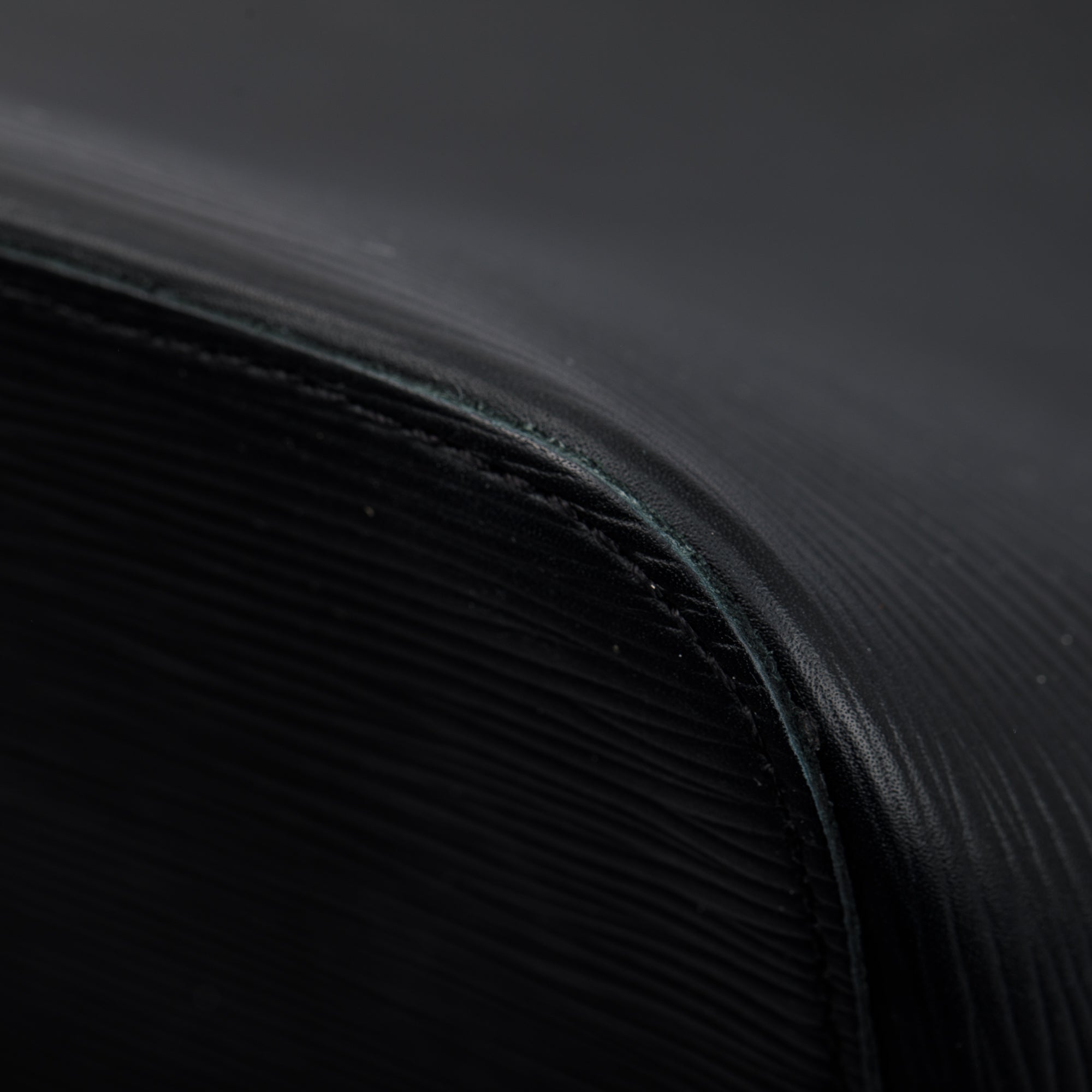 Condition: Good; slight scratches and creasing throughout exterior leather; slight scuffing and wear at shoulder straps; clean interior