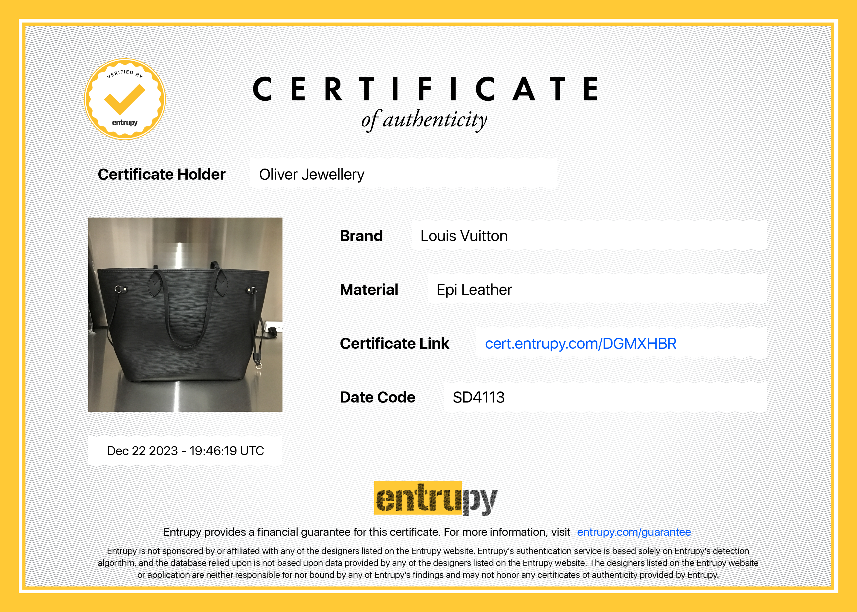 Detachable Pouch, Entrupy Certificate of Authenticity