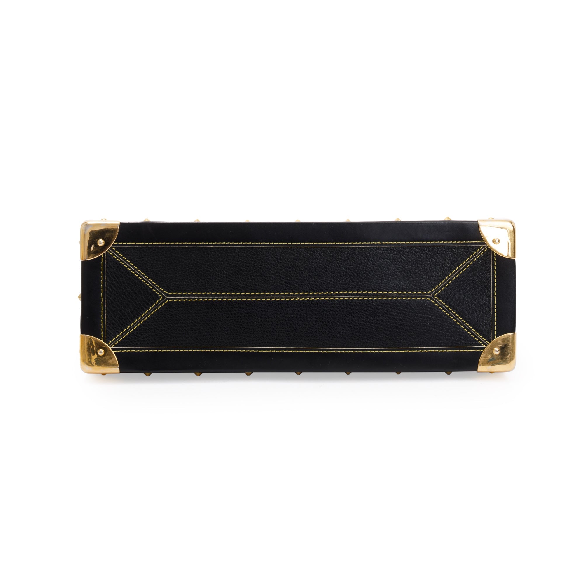 Condition: Good; some surface scratches and tarnishing at hardware; slight marks and creasing at exterior leather; clean interior