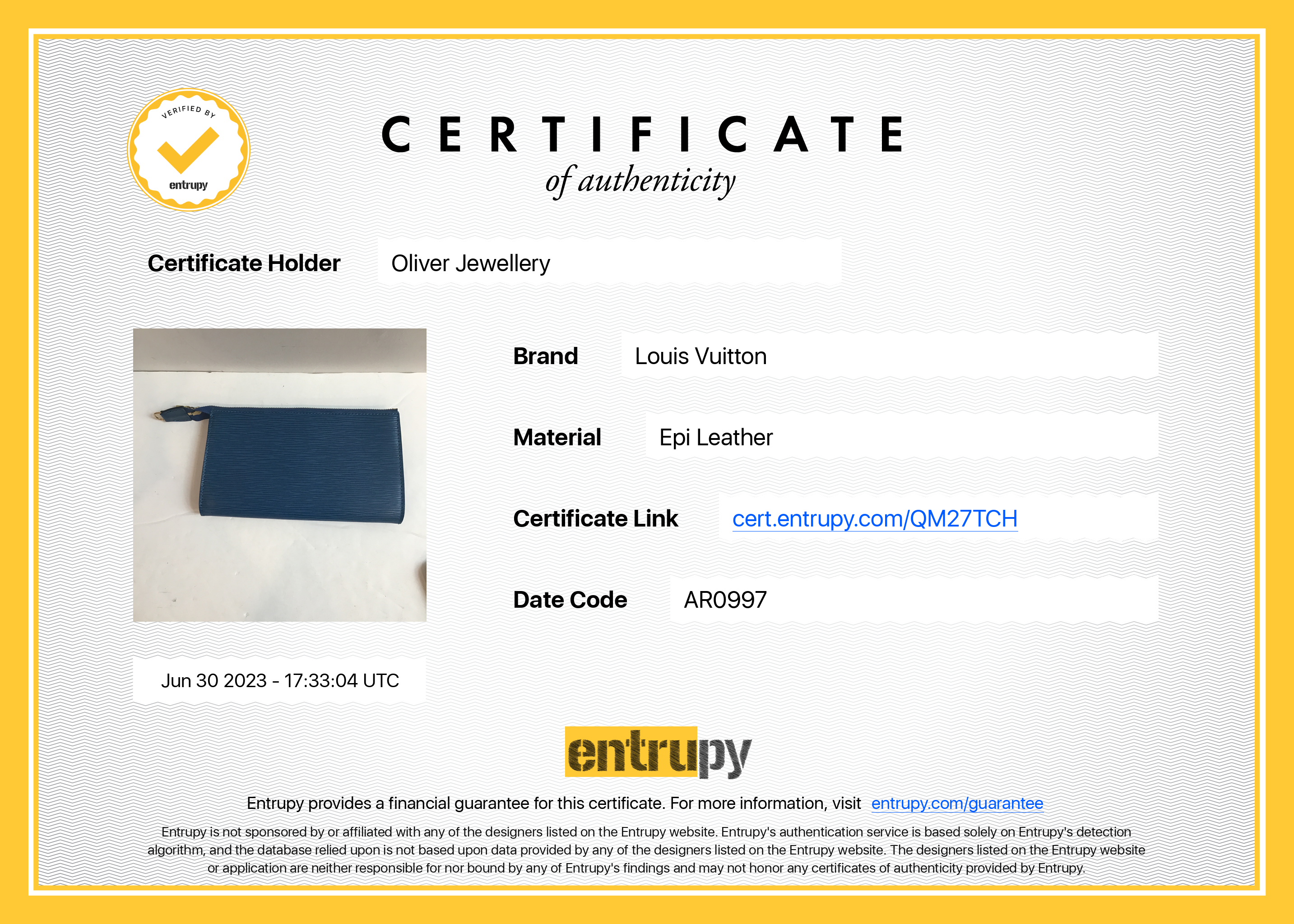 Included Items: Entrupy Certificate of Authenticty #: QM27TCH