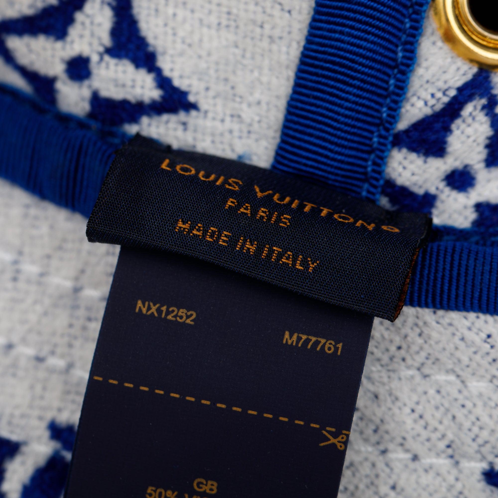 Blue & White Jacquard Velvet Monogram Match Reversible Bucket Hat, Size M