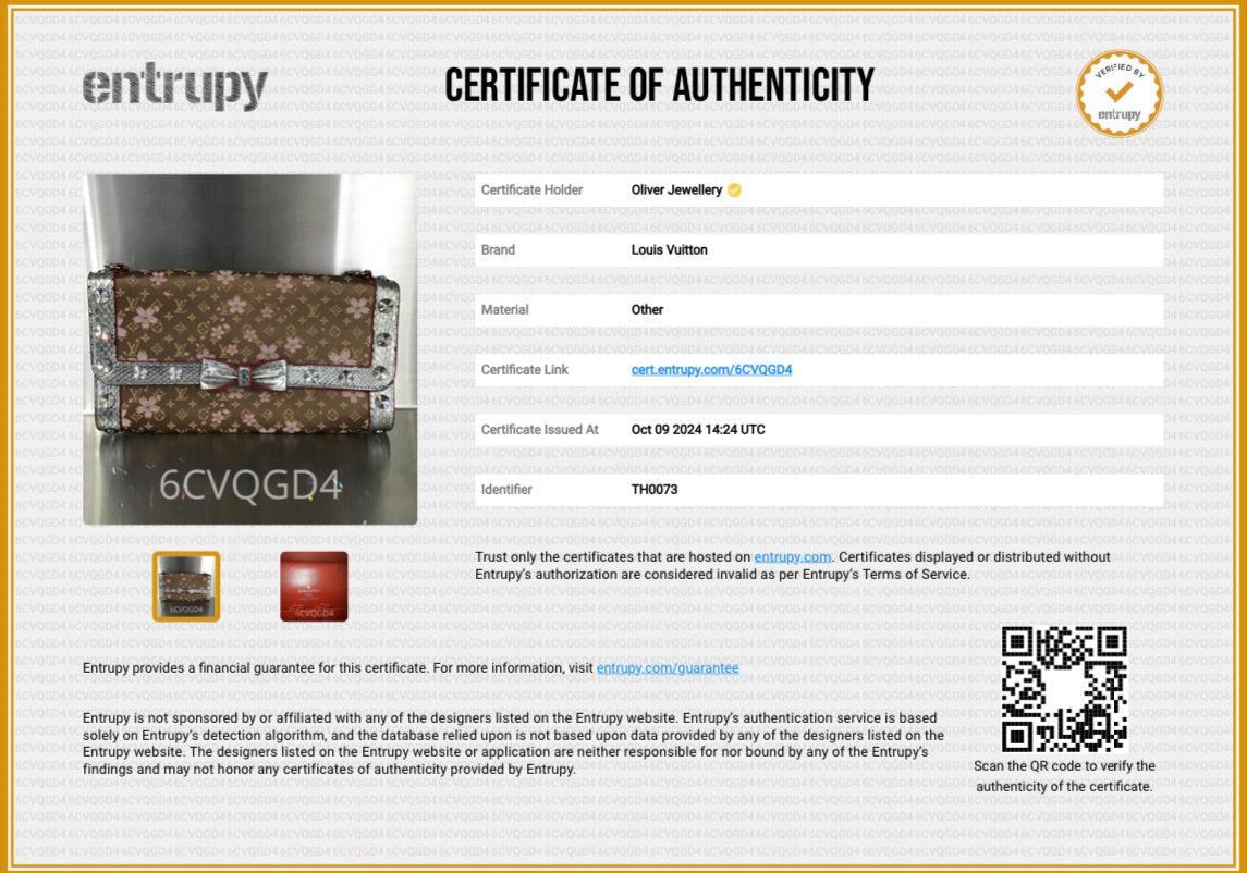Brown Monogram Cherry Blossom Satin Silver Python Trim Crystal Amarene Shoulder Bag