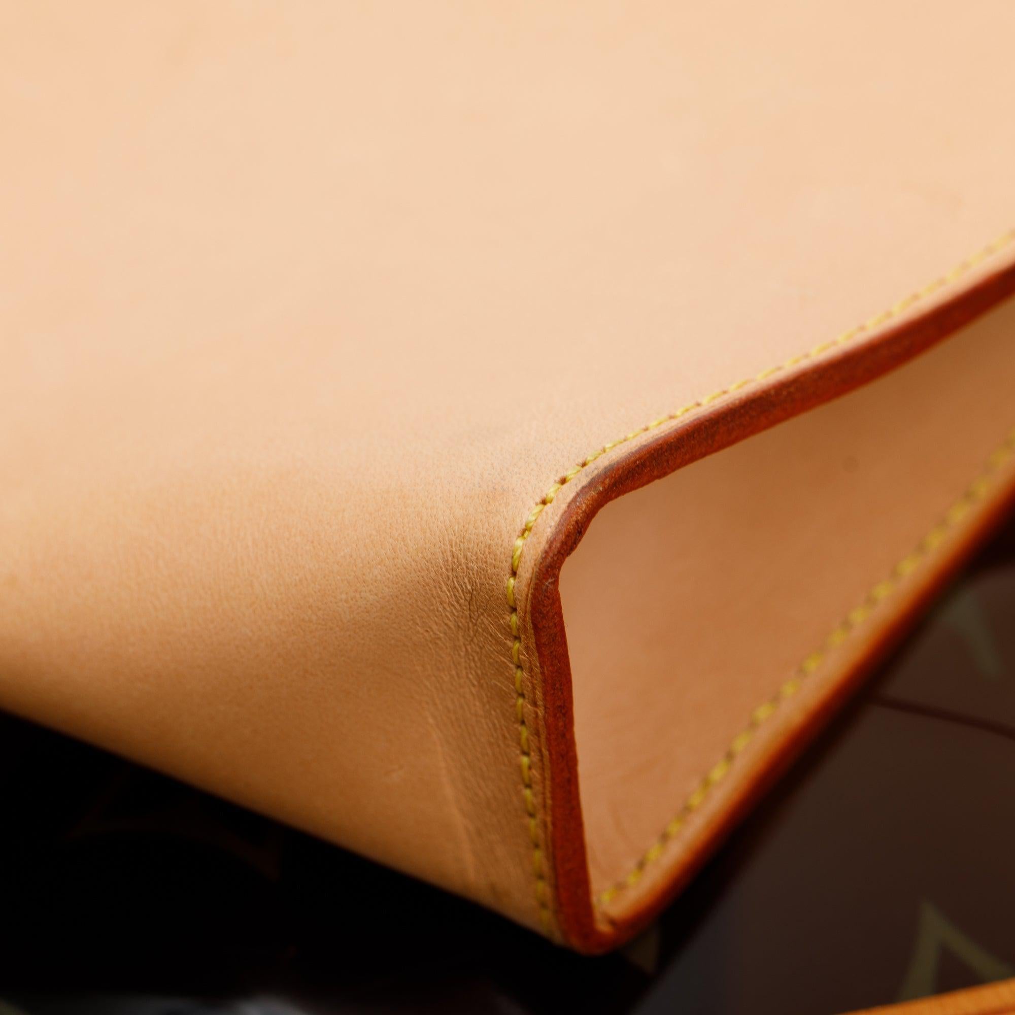 Condition: Good; some marks, scratches and discolouration at exterior leather trim and shoulder strap; slight scratches at vinyl; clean interior