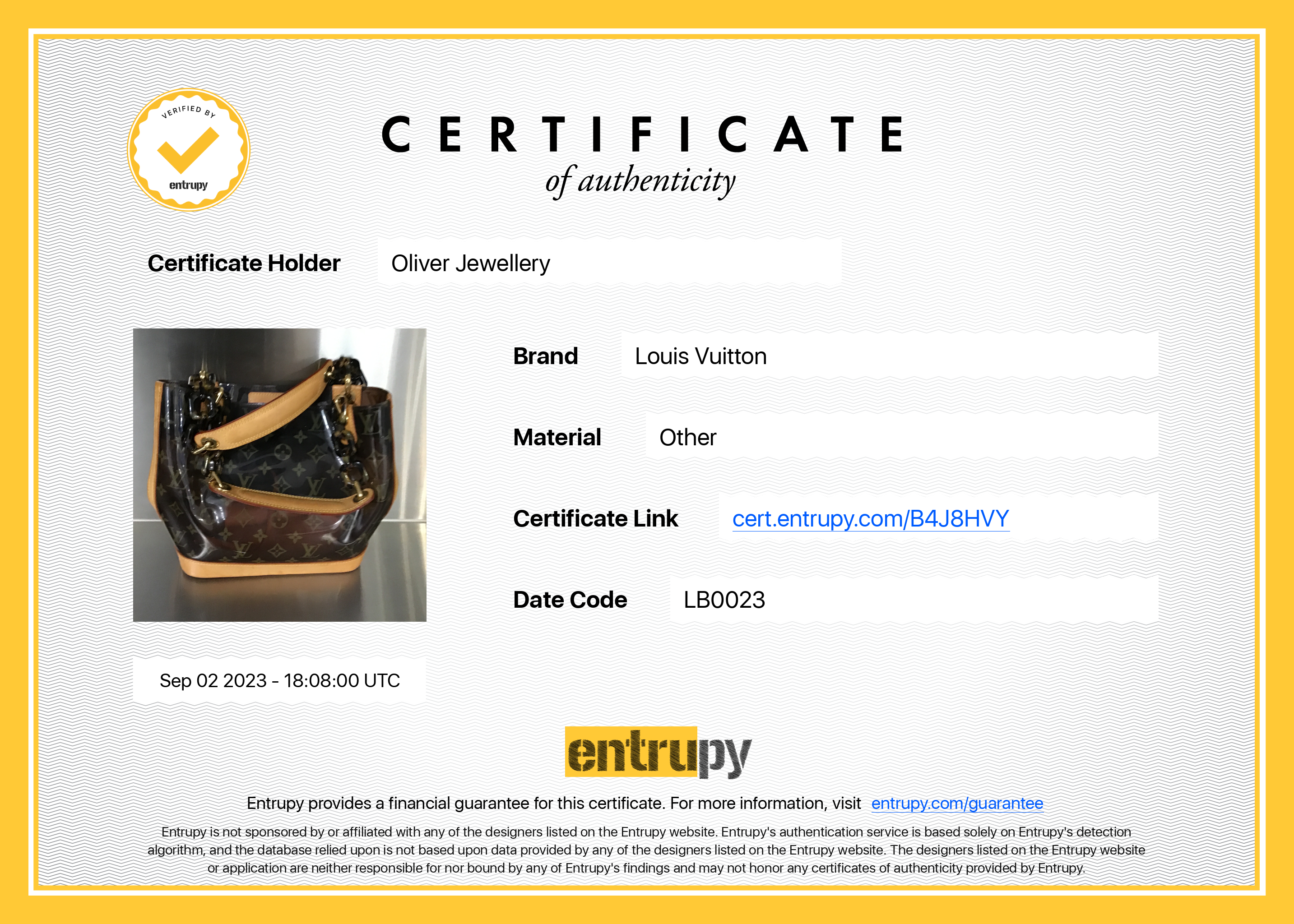 Pouch, Entrupy Certificate of Authenticity
