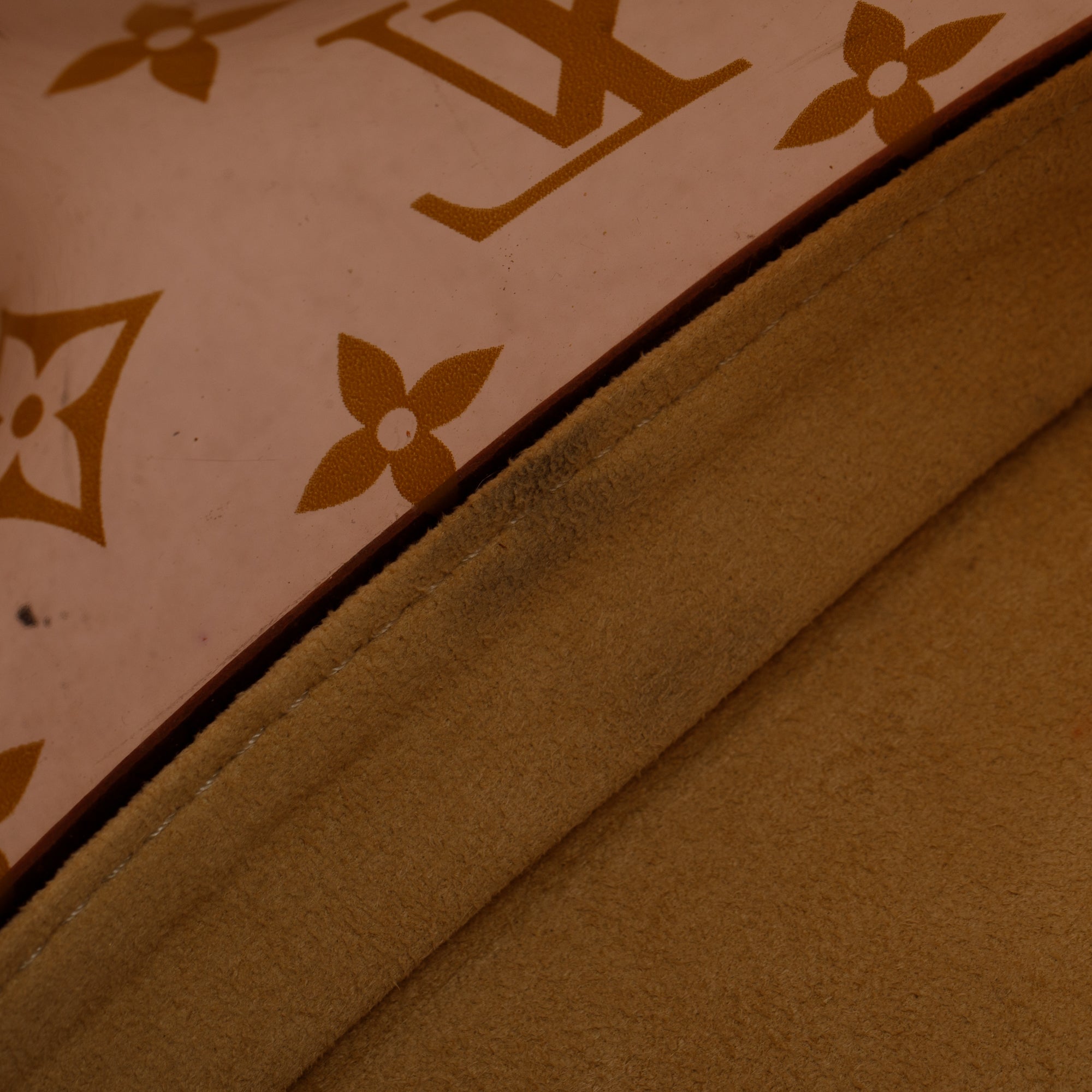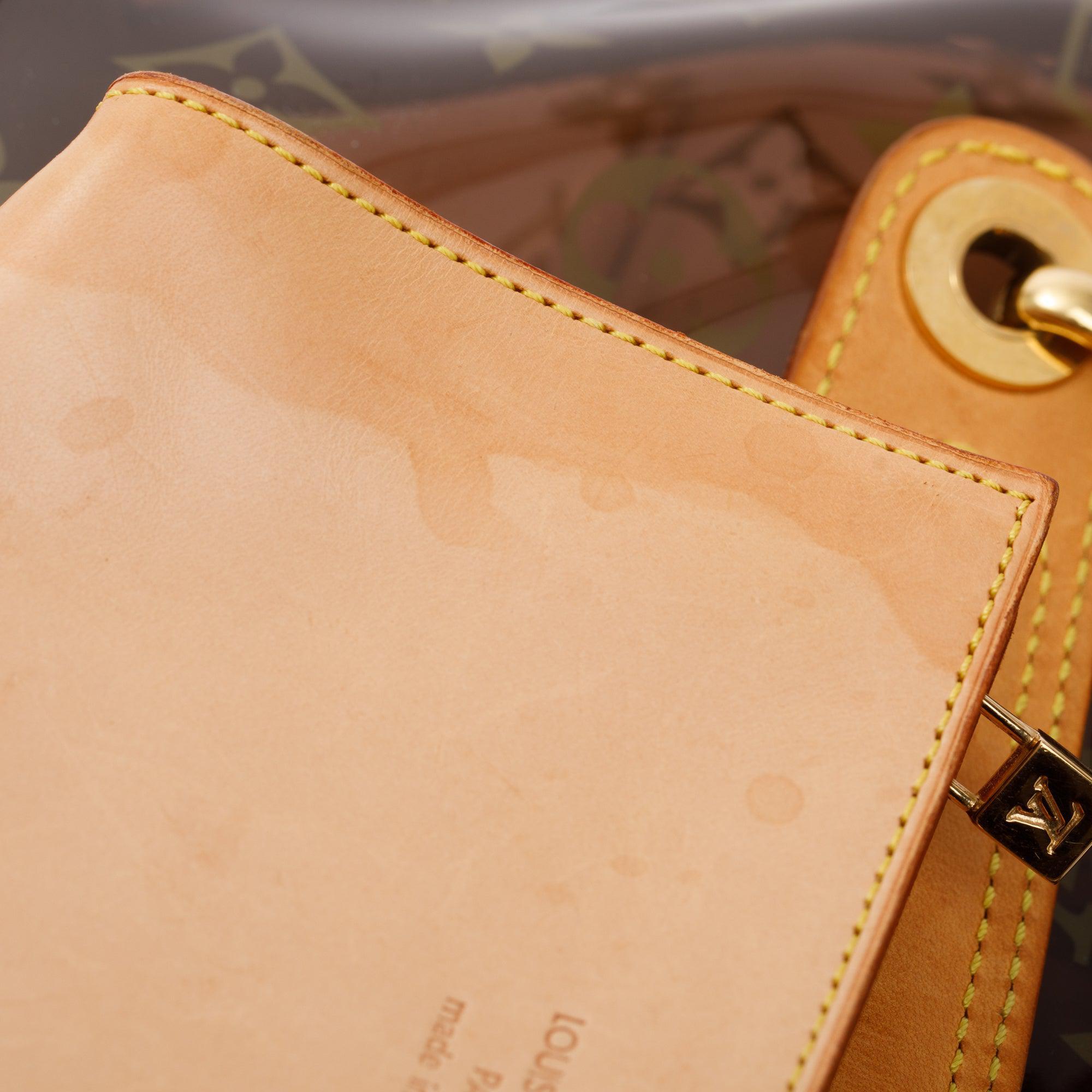 Condition: Good; some scratches, marks, wear and discolouration at exterior vachetta leather shoulder traps; slight scratches at exterior vinyl; slight marks at interior base