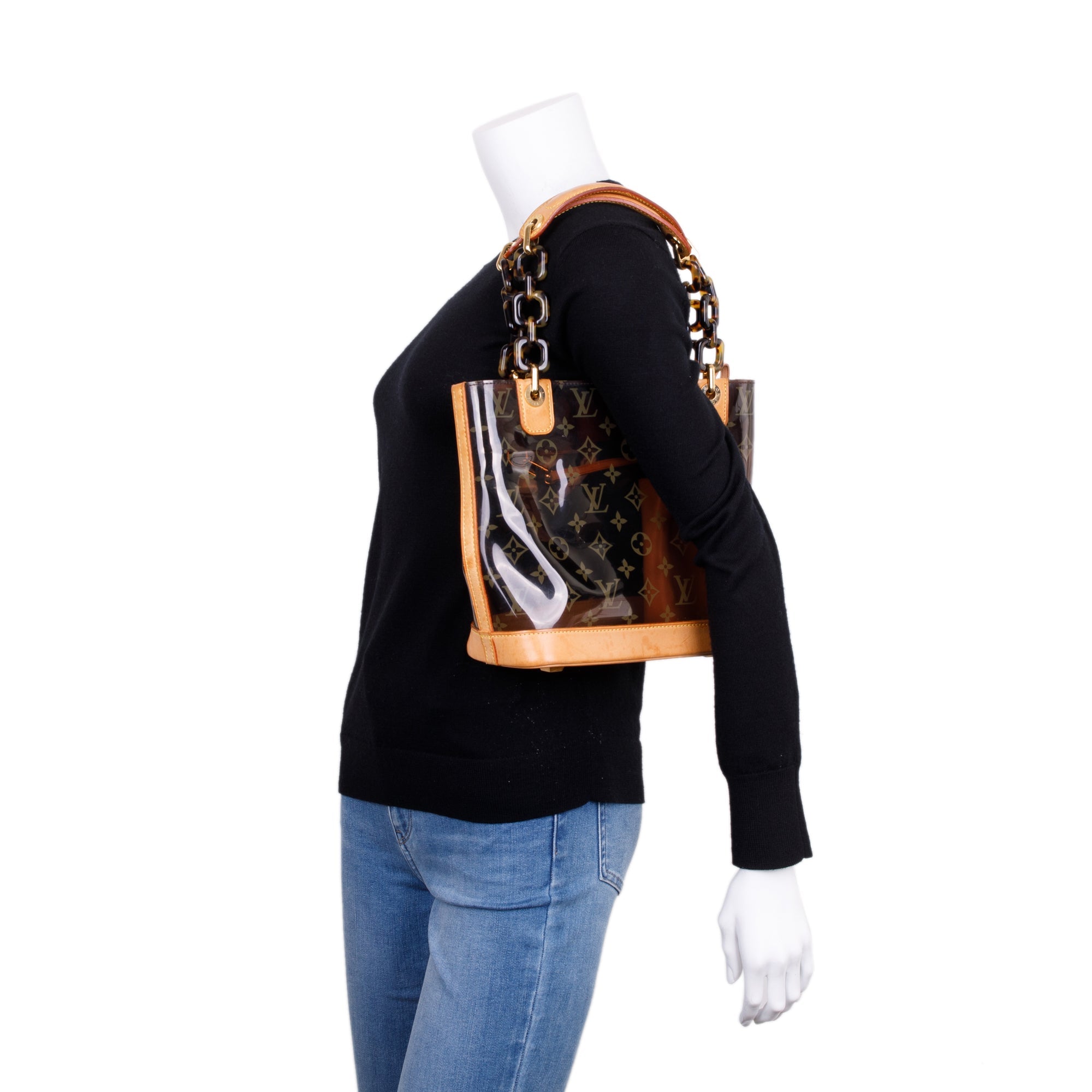 Brown Monogram Vinyl Cabas Sac Ambre PM Tote w/ Pouch