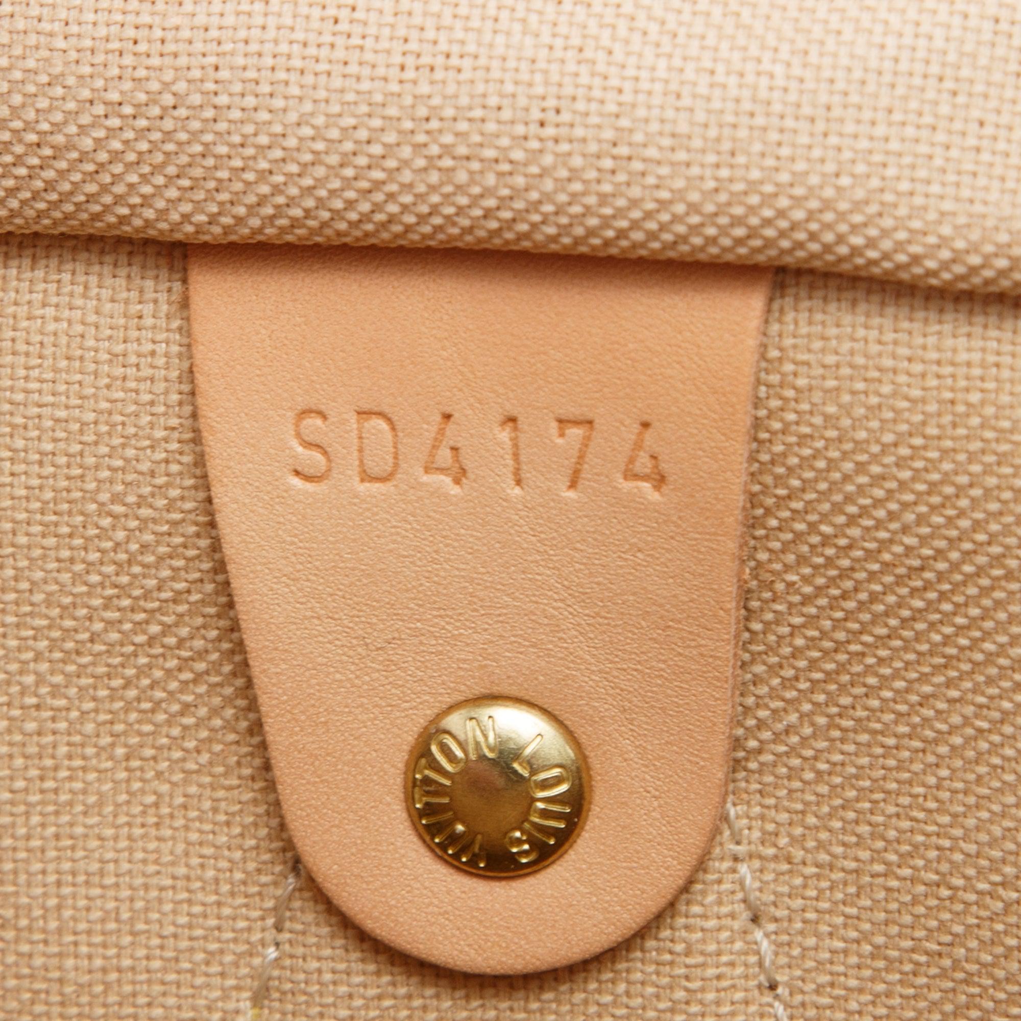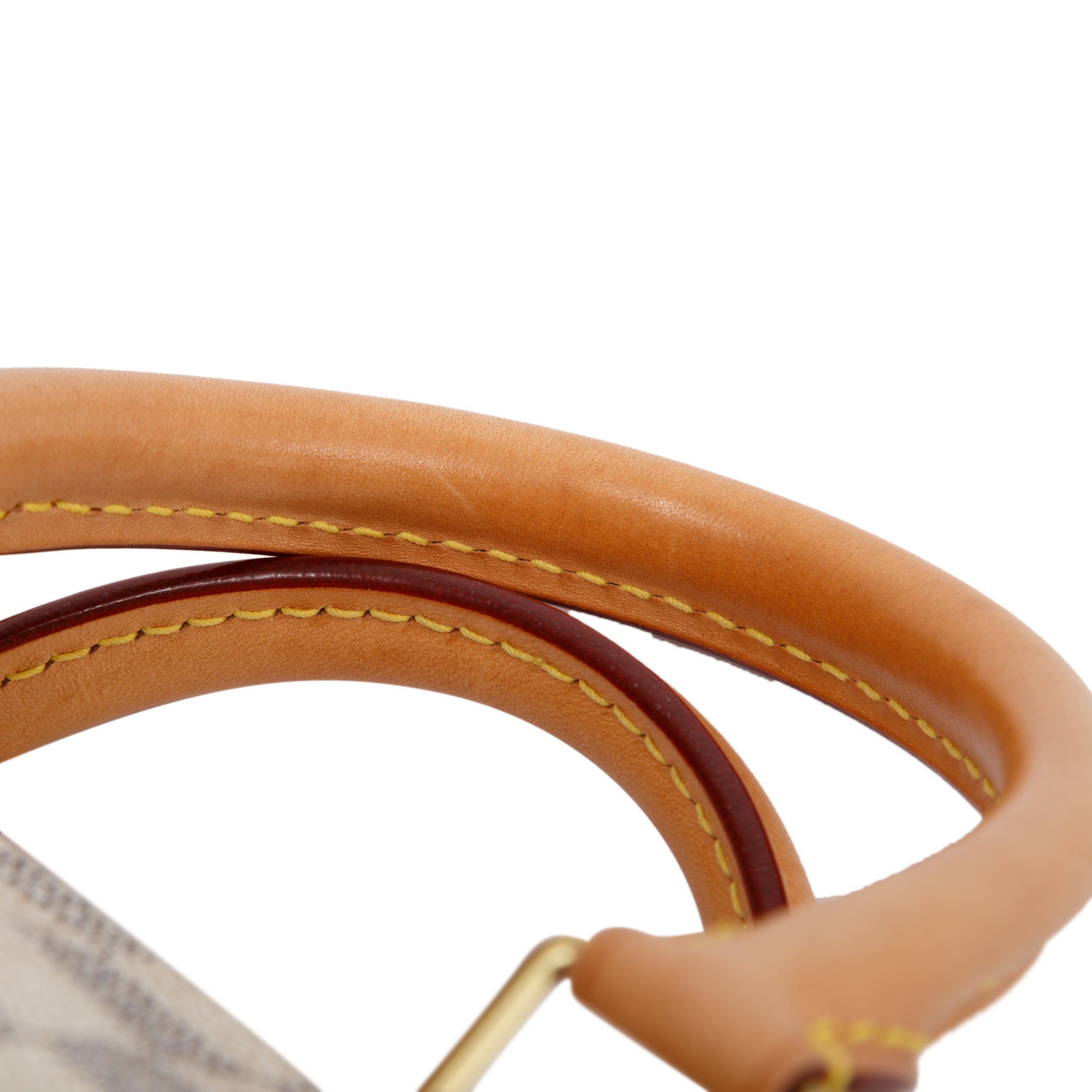 Condition: Very Good; slight marks and discolouration at exterior leather trim and handles; clean interior; 'A.LO' initials and heart foil stamped at exterior leather trim