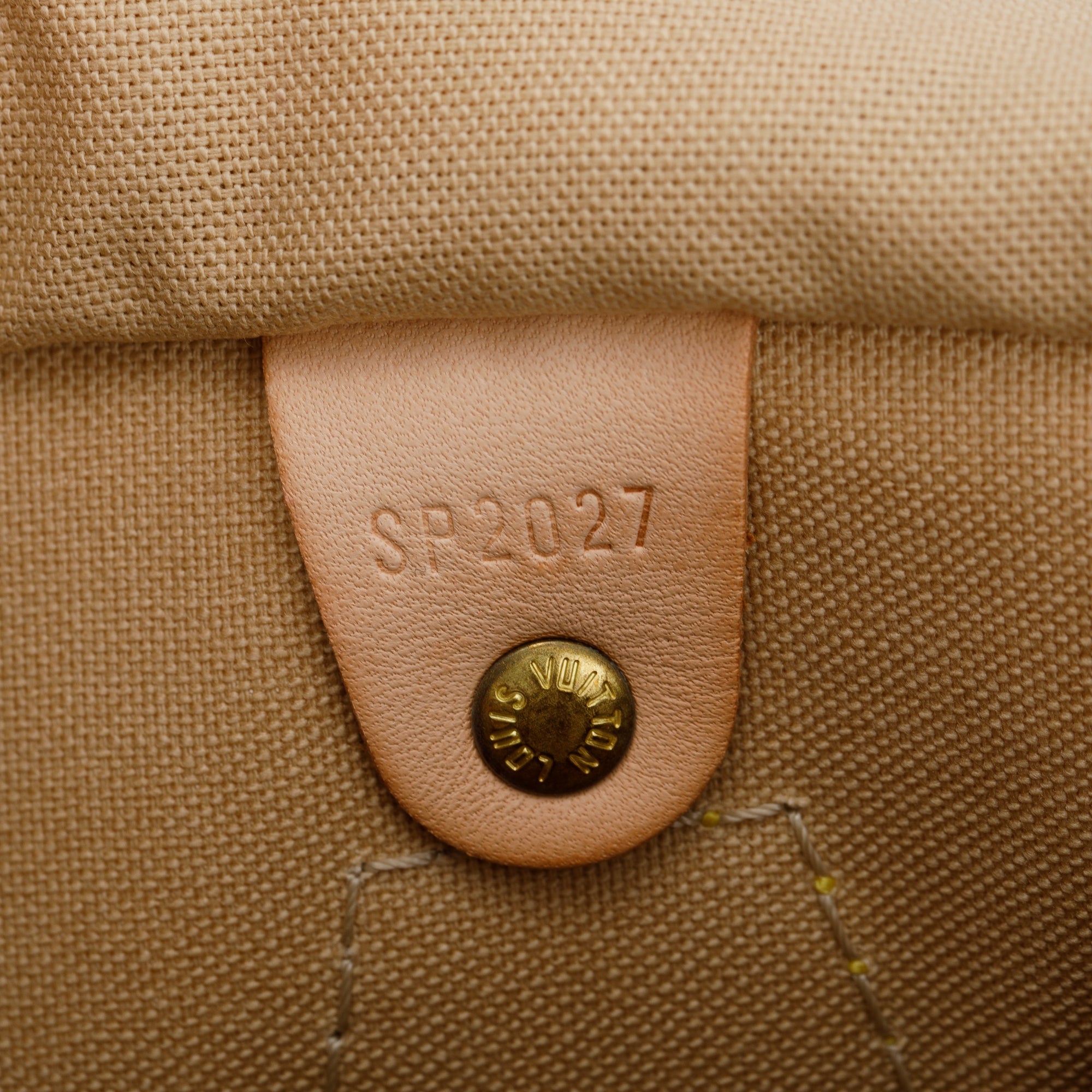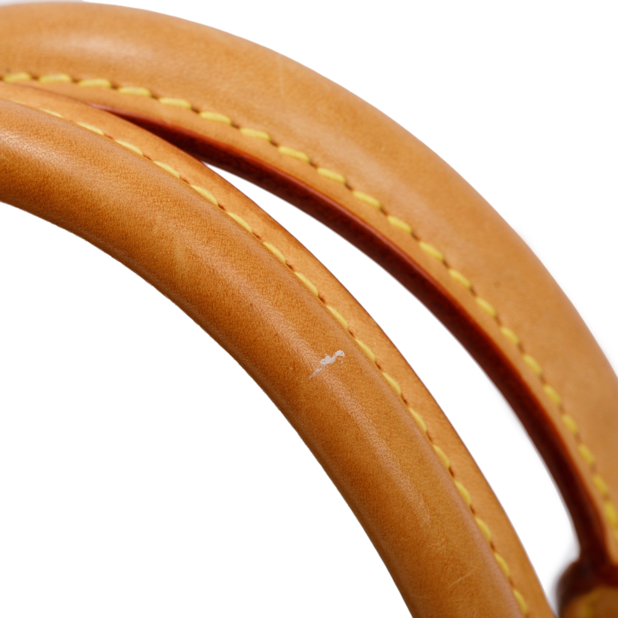 Condition: Very Good; slight tarnishing at hardware; slight marks at exterior canvas; slight marks and discolouration at vachetta leather trim; light marks at interior