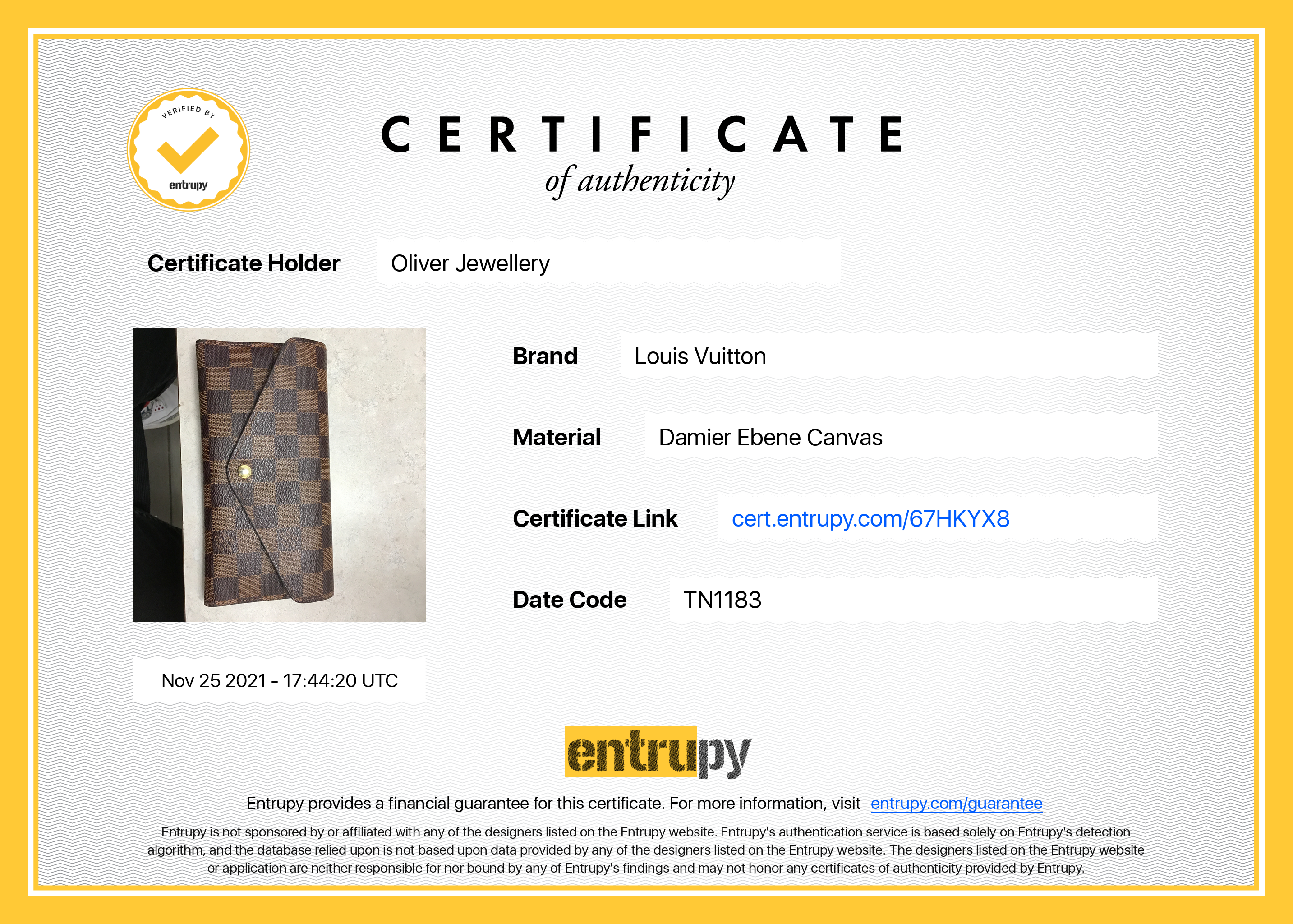 Box, Dust Bag, Entrupy Certificate of Authenticity