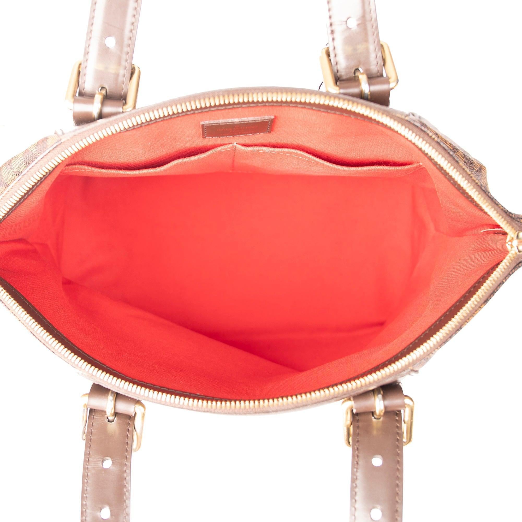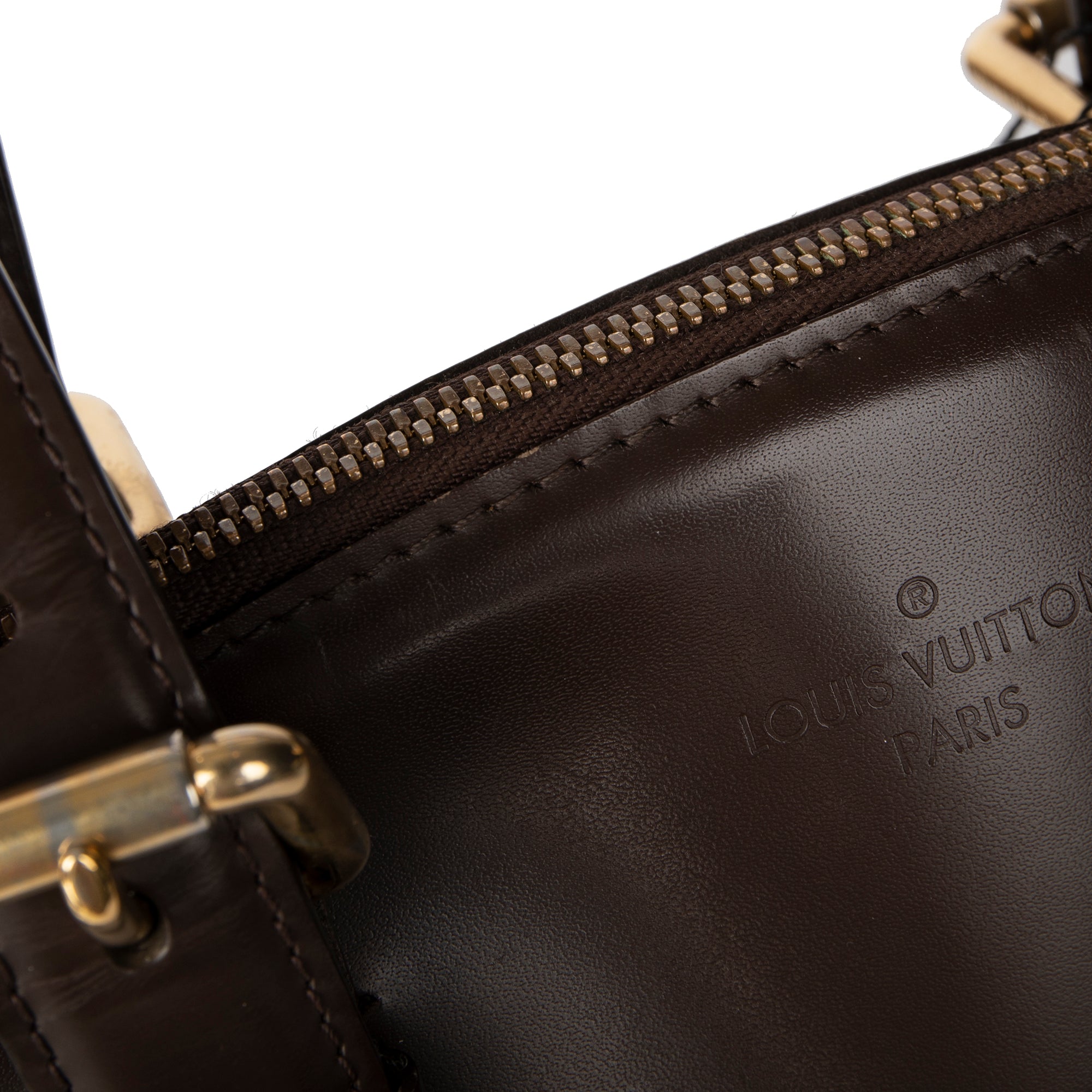 Condition: Very Good; some surface scratches and tarnishing at hardware; slight scratches at exterior leather trim; some scuffing at exterior bottom corner; clean interior