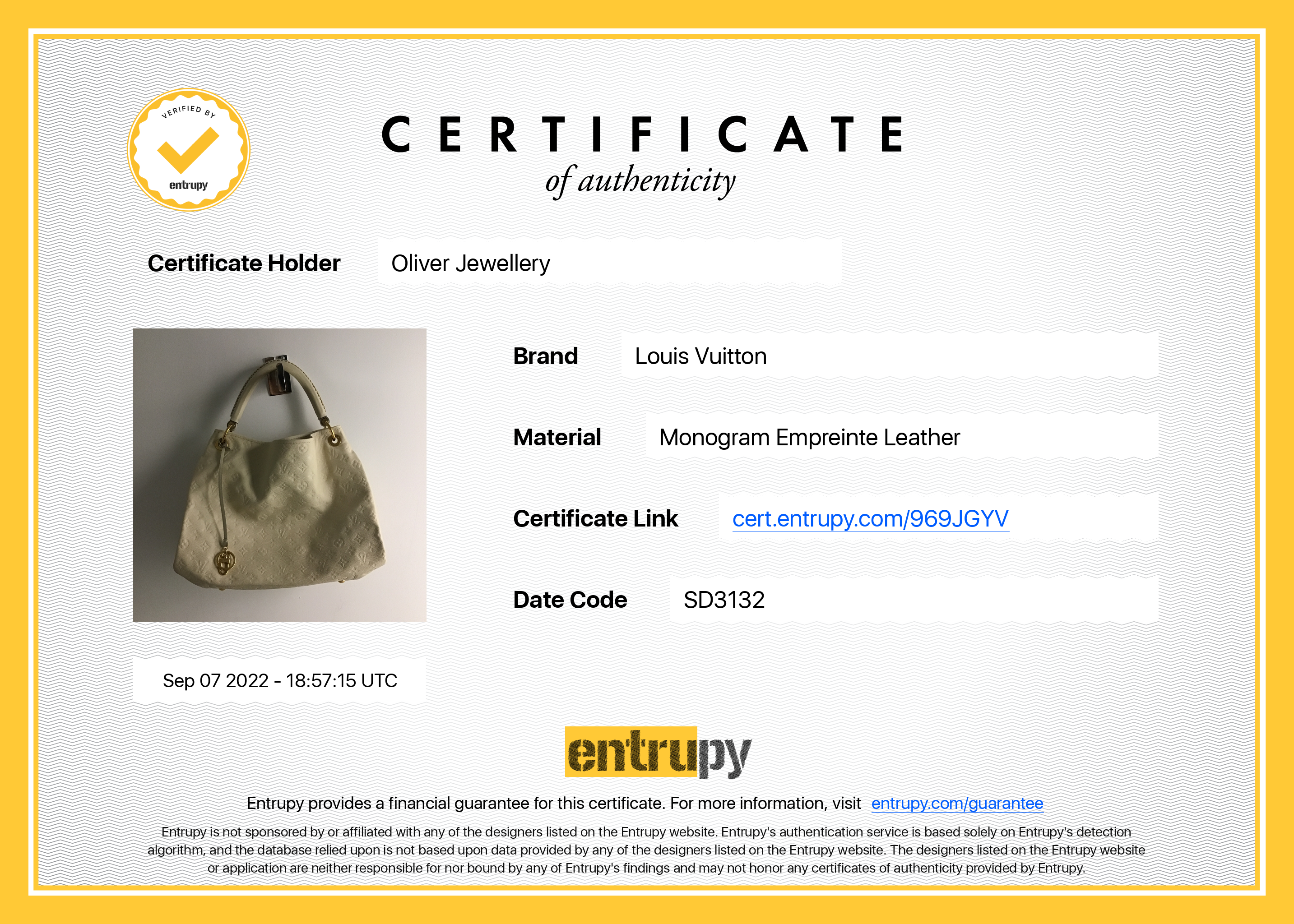 Included Item: Entrupy Certificate of Authenticity #: 969JGYV
