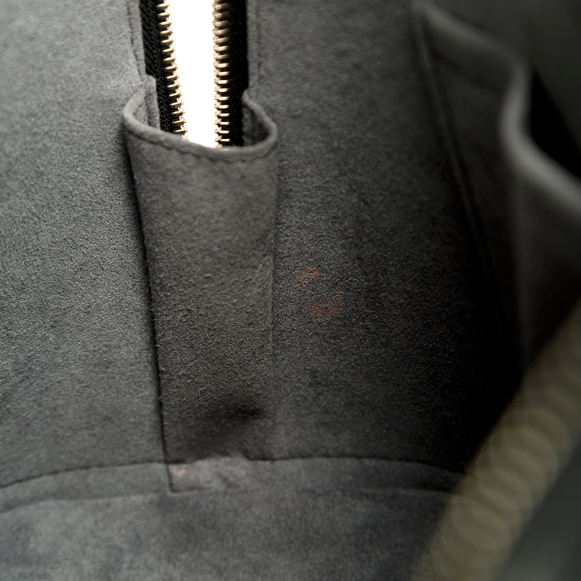 Condition: Very Good; minor surface scratches at hardware; minor scuffing at exterior base edges; minor scratches at base; minor marks at side of interior