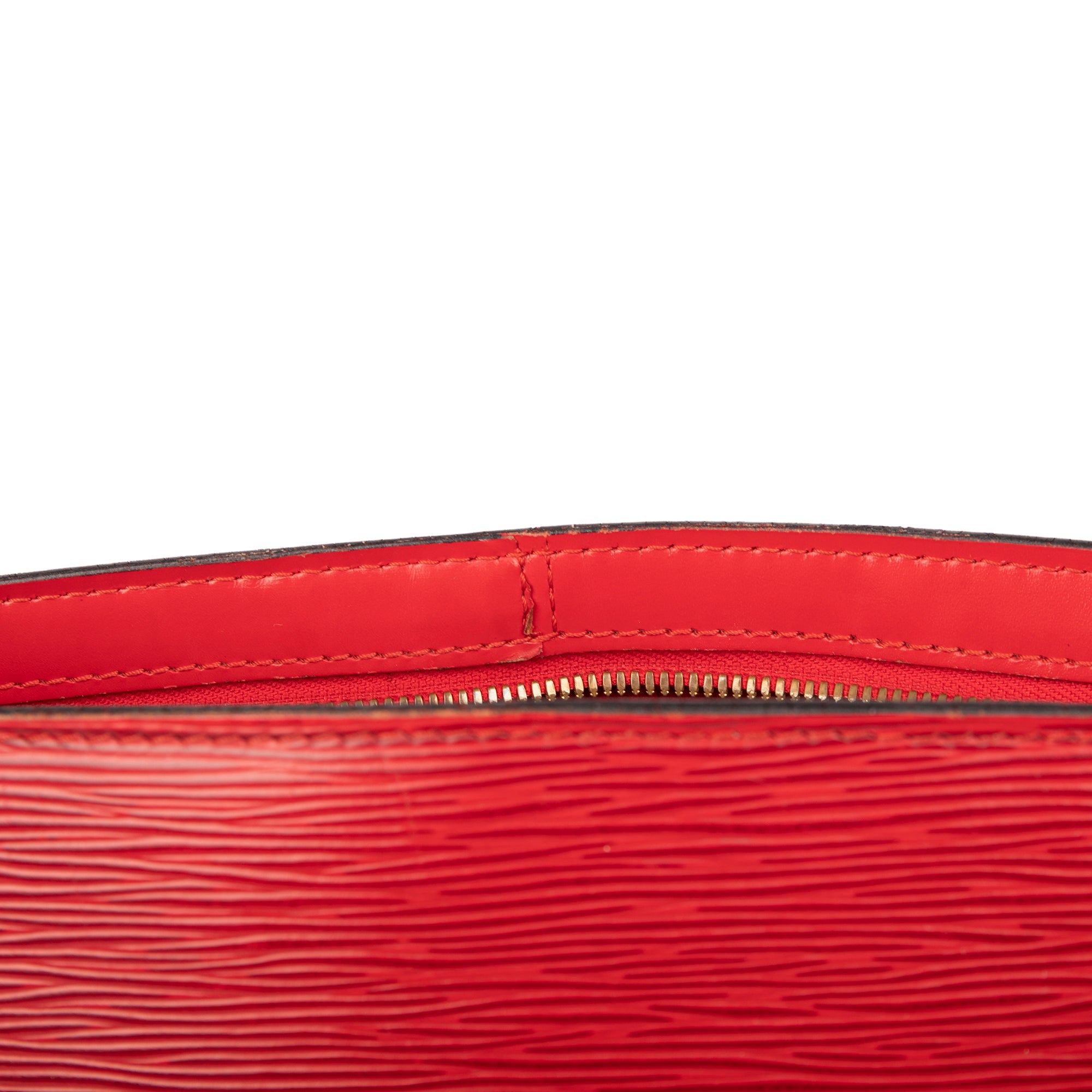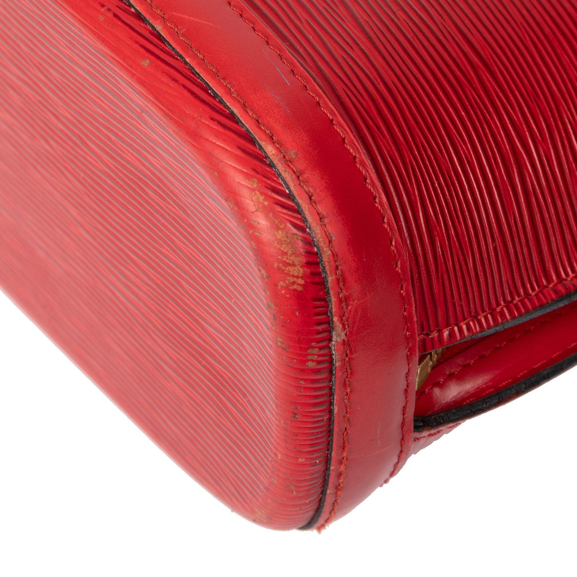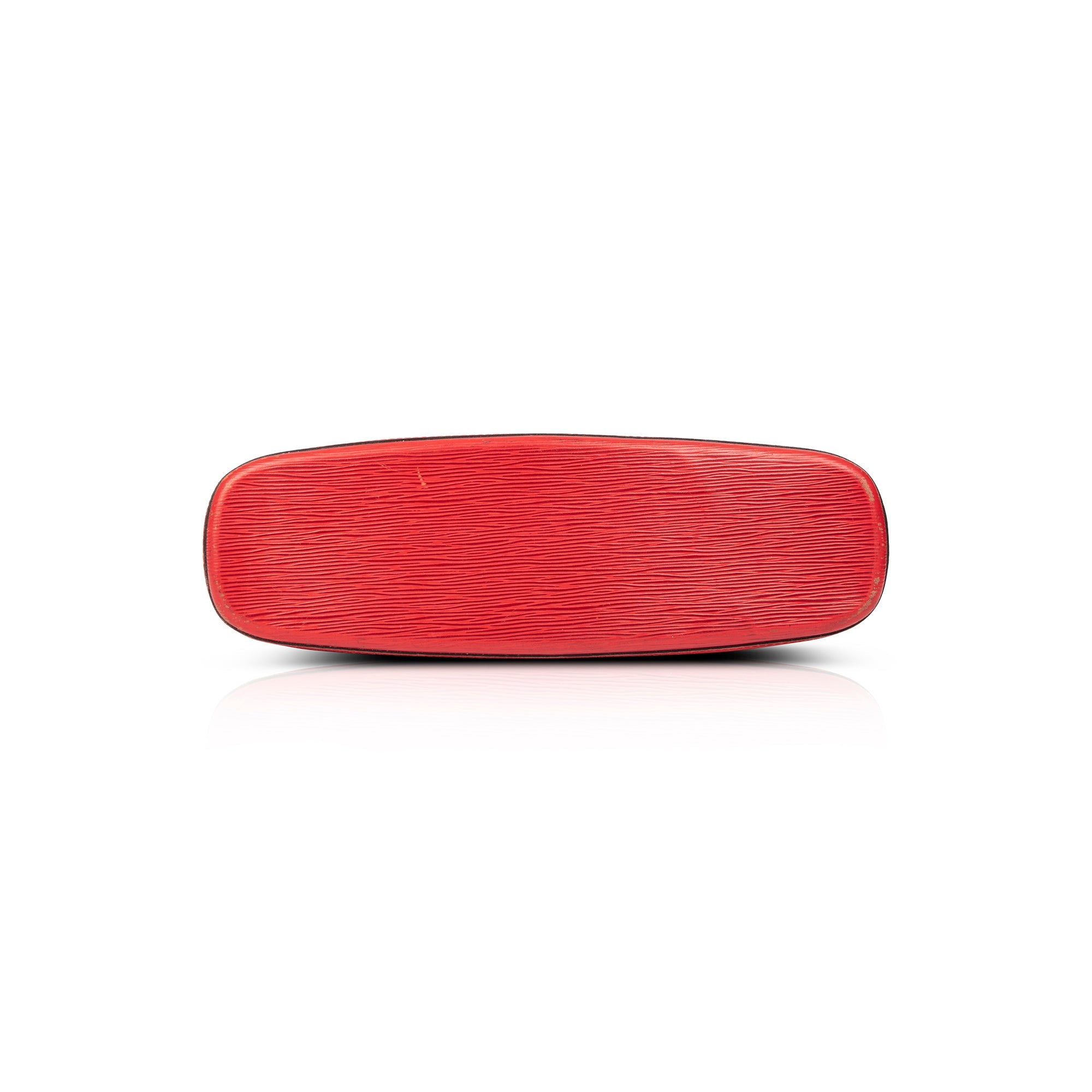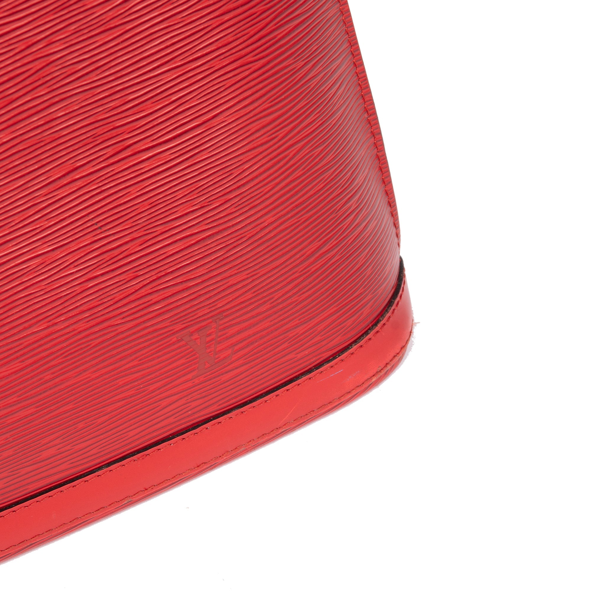 Condition: Good; some surface scratches and tarnishing at hardware; slight scuffing and marks at exterior leather; some scuffing at base edges and shoulder strap; some darkening at interior lining