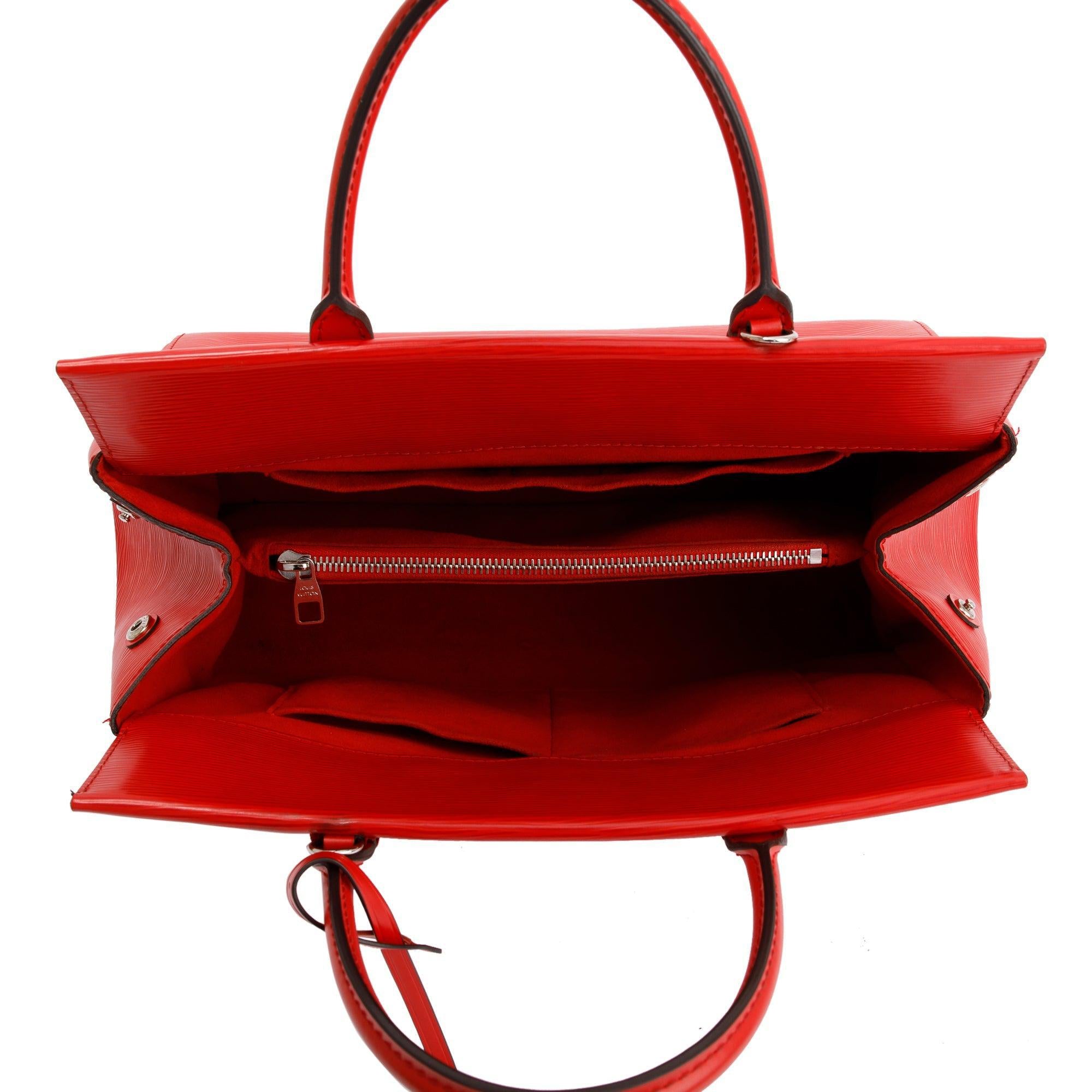 Condition: Very Good; slight creasing at exterior leather and handles; clean interior