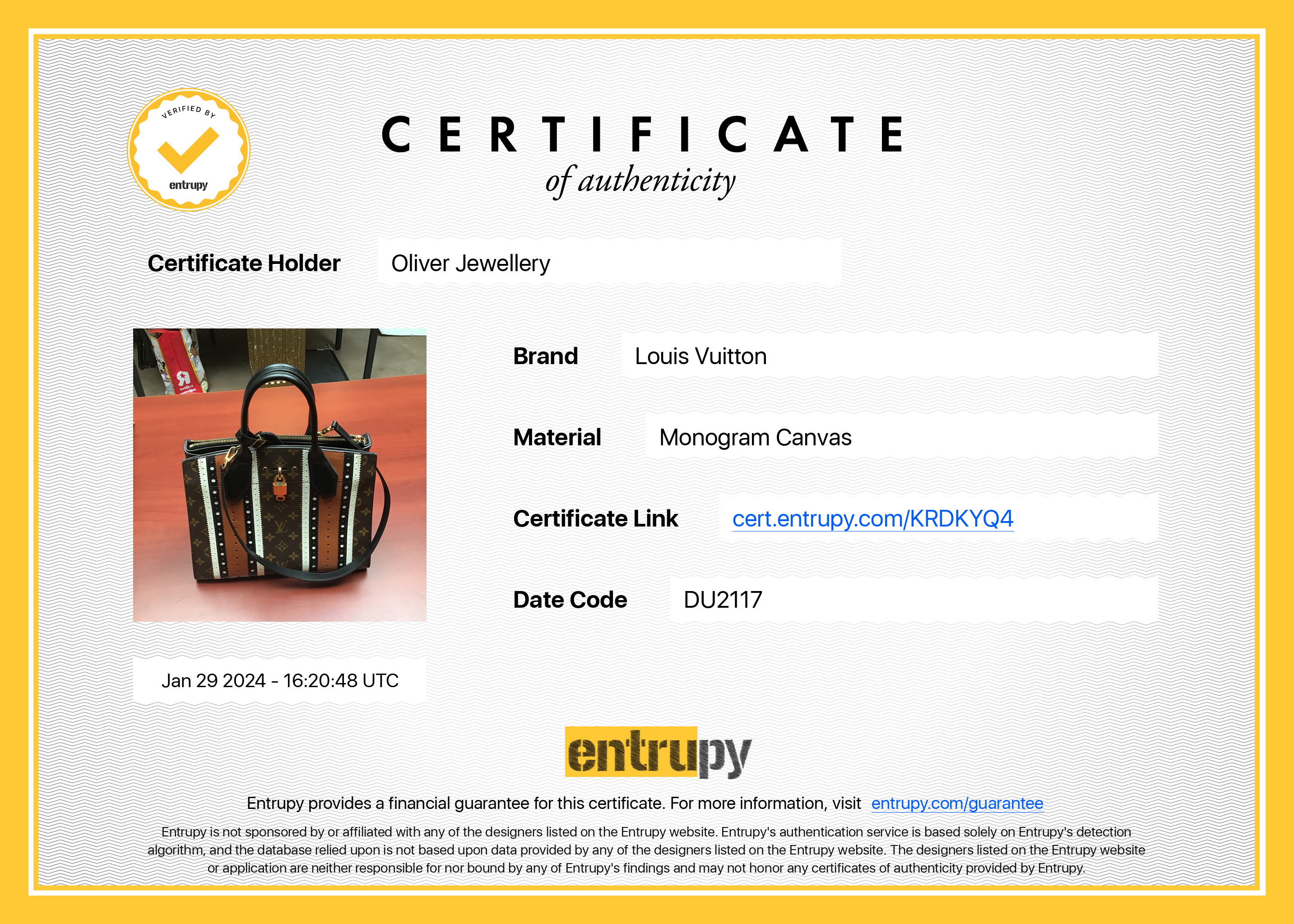 Box, Dust Bag, Receipt, Lock & Keys, Luggage Tag, Entrupy Certificate of Authenticity